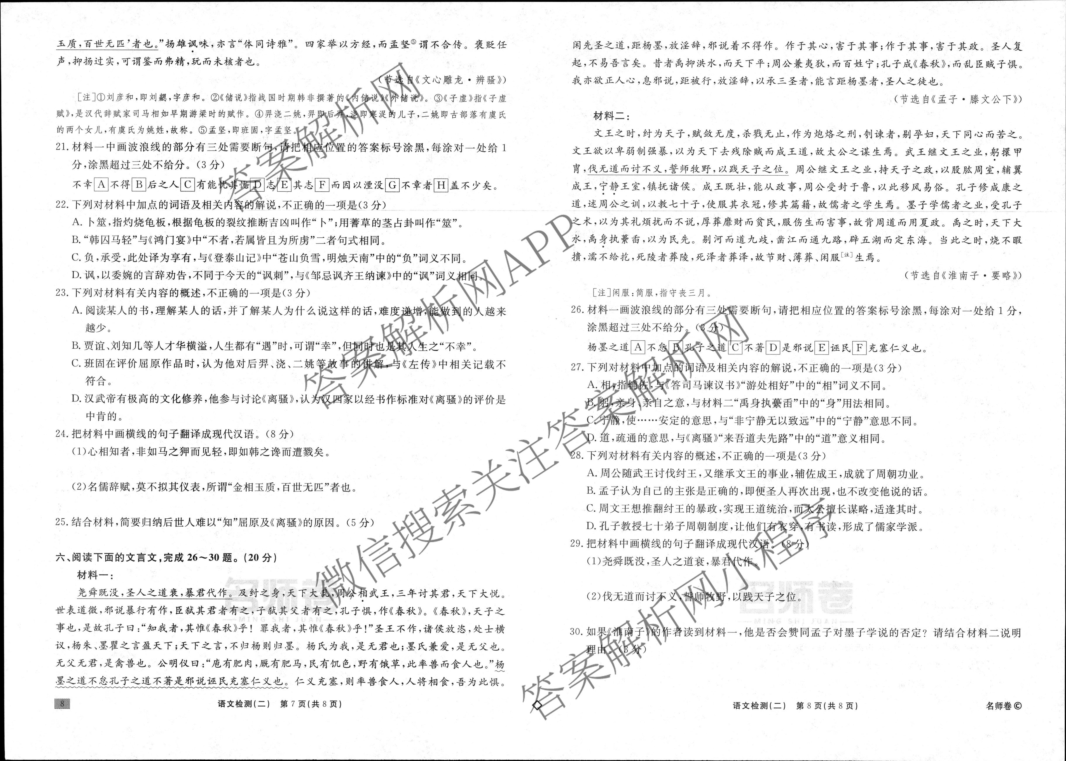 衡水名师卷·2024-2025学年度高三一轮复习单元检测卷·语文(空心菱形)·检测(二)2试题,目前分科卷答案网已经汇总了衡水名师卷·2024-2025学年度高三一轮复习单元检测卷·语文(空心菱形)·检测(二)2试题的各科答案和试卷,获取更多衡水名师卷答案解析,请在关注本站。