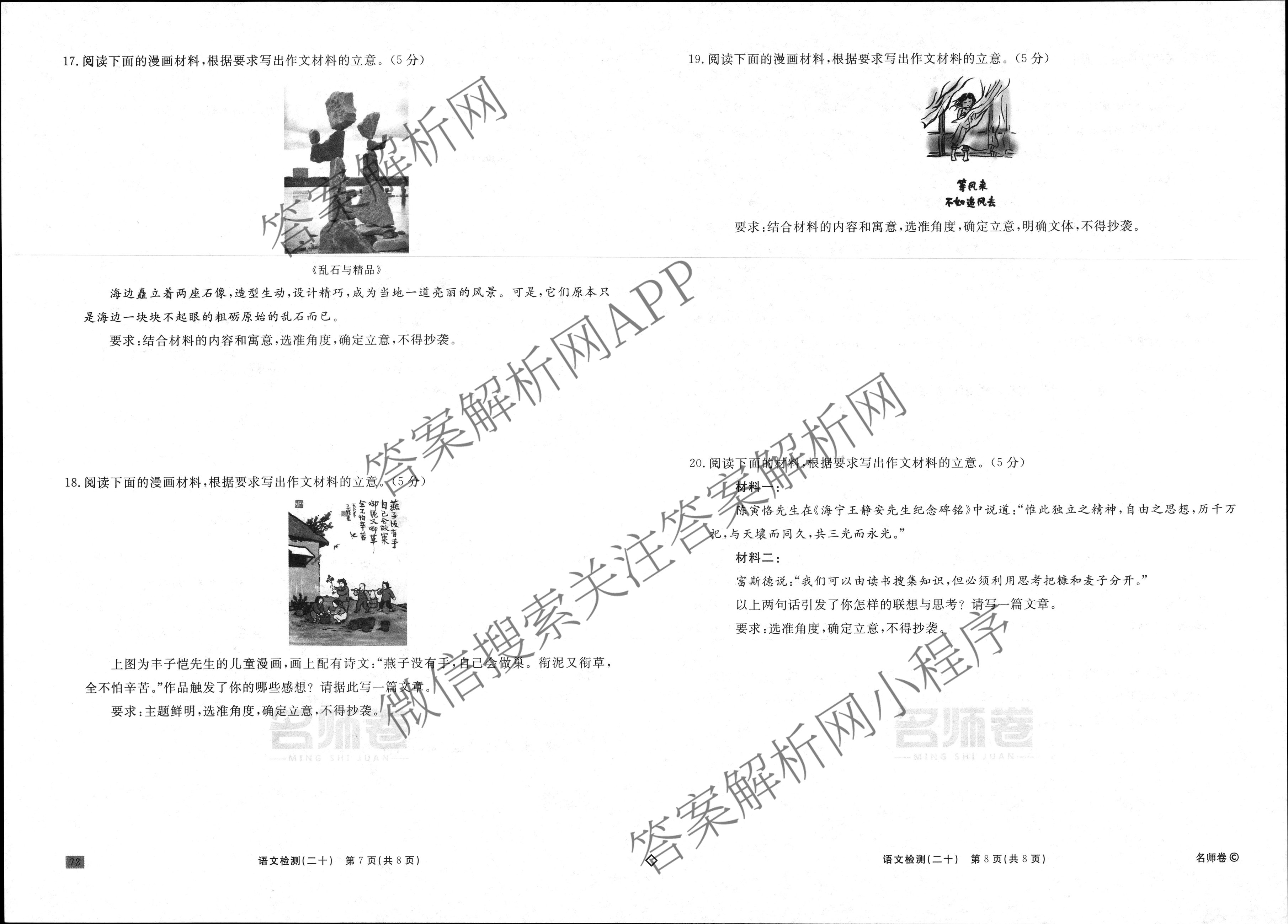衡水名师卷·2024-2025学年度高三一轮复习单元检测卷·语文(空心菱形)·检测(二十)20试题,目前分科卷答案网已经汇总了衡水名师卷·2024-2025学年度高三一轮复习单元检测卷·语文(空心菱形)·检测(二十)20试题的各科答案和试卷,获取更多衡水名师卷答案解析,请在关注本站。