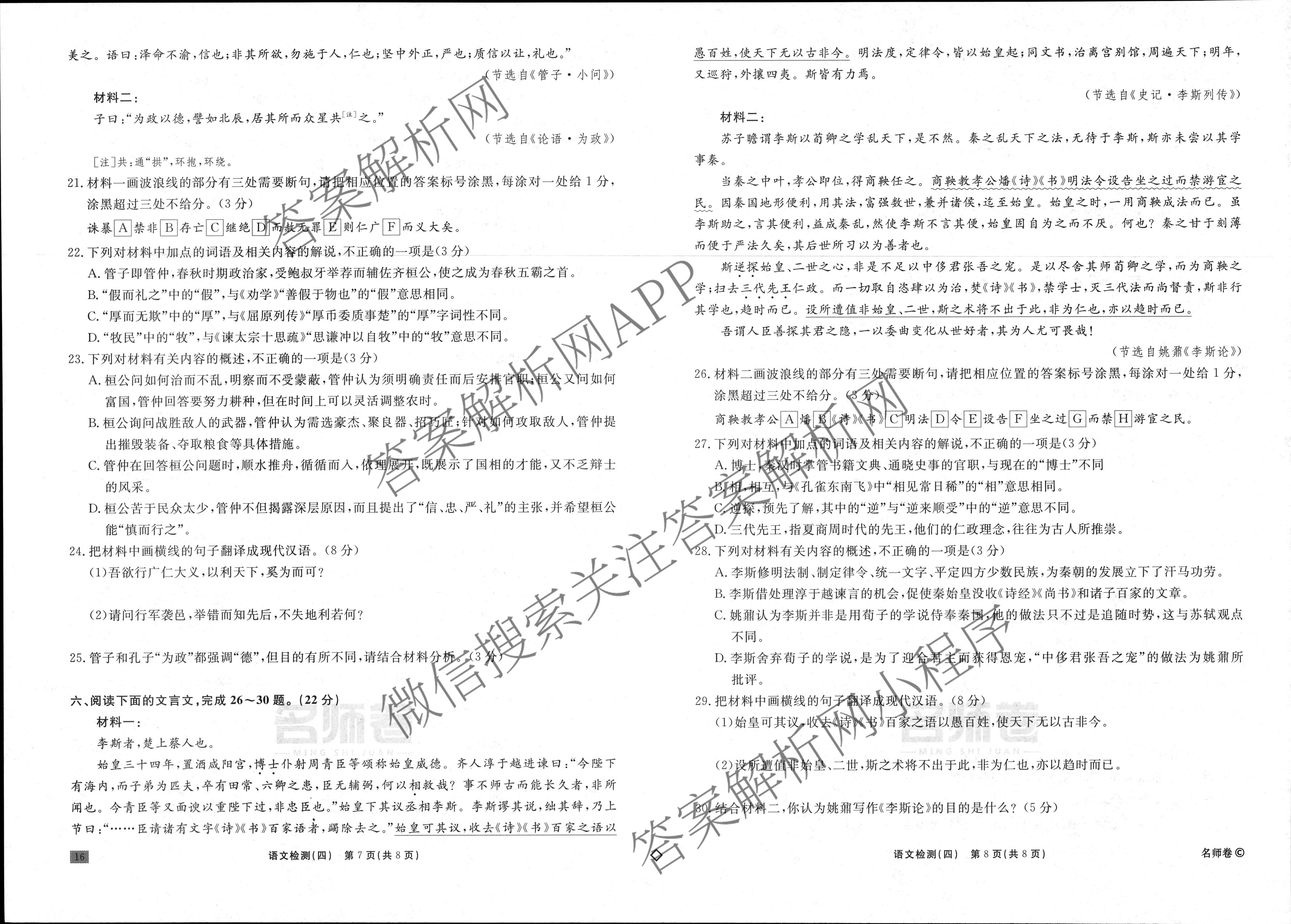 衡水名师卷·2024-2025学年度高三一轮复习单元检测卷·语文(空心菱形)·检测(四)4试题,目前分科卷答案网已经汇总了衡水名师卷·2024-2025学年度高三一轮复习单元检测卷·语文(空心菱形)·检测(四)4试题的各科答案和试卷,获取更多衡水名师卷答案解析,请在关注本站。