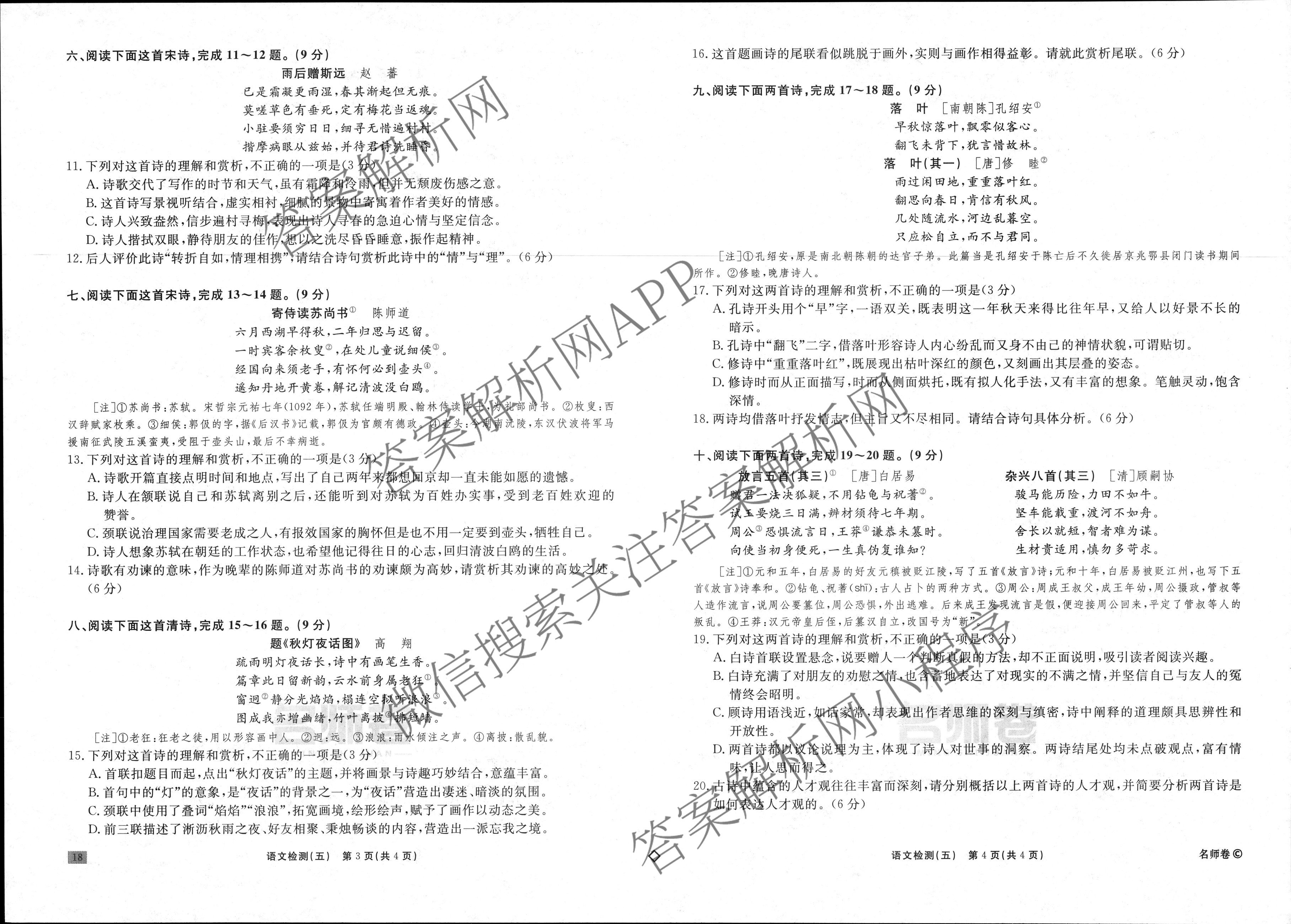 衡水名师卷·2024-2025学年度高三一轮复习单元检测卷·语文(空心菱形)·检测(五)5试题,目前分科卷答案网已经汇总了衡水名师卷·2024-2025学年度高三一轮复习单元检测卷·语文(空心菱形)·检测(五)5试题的各科答案和试卷,获取更多衡水名师卷答案解析,请在关注本站。
