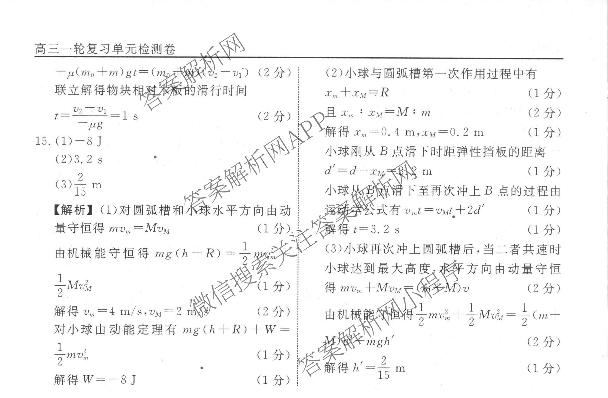 衡水名师卷2024-2025学年度高三一轮复习单元检测卷物理(实心圆)检测(八)8答案