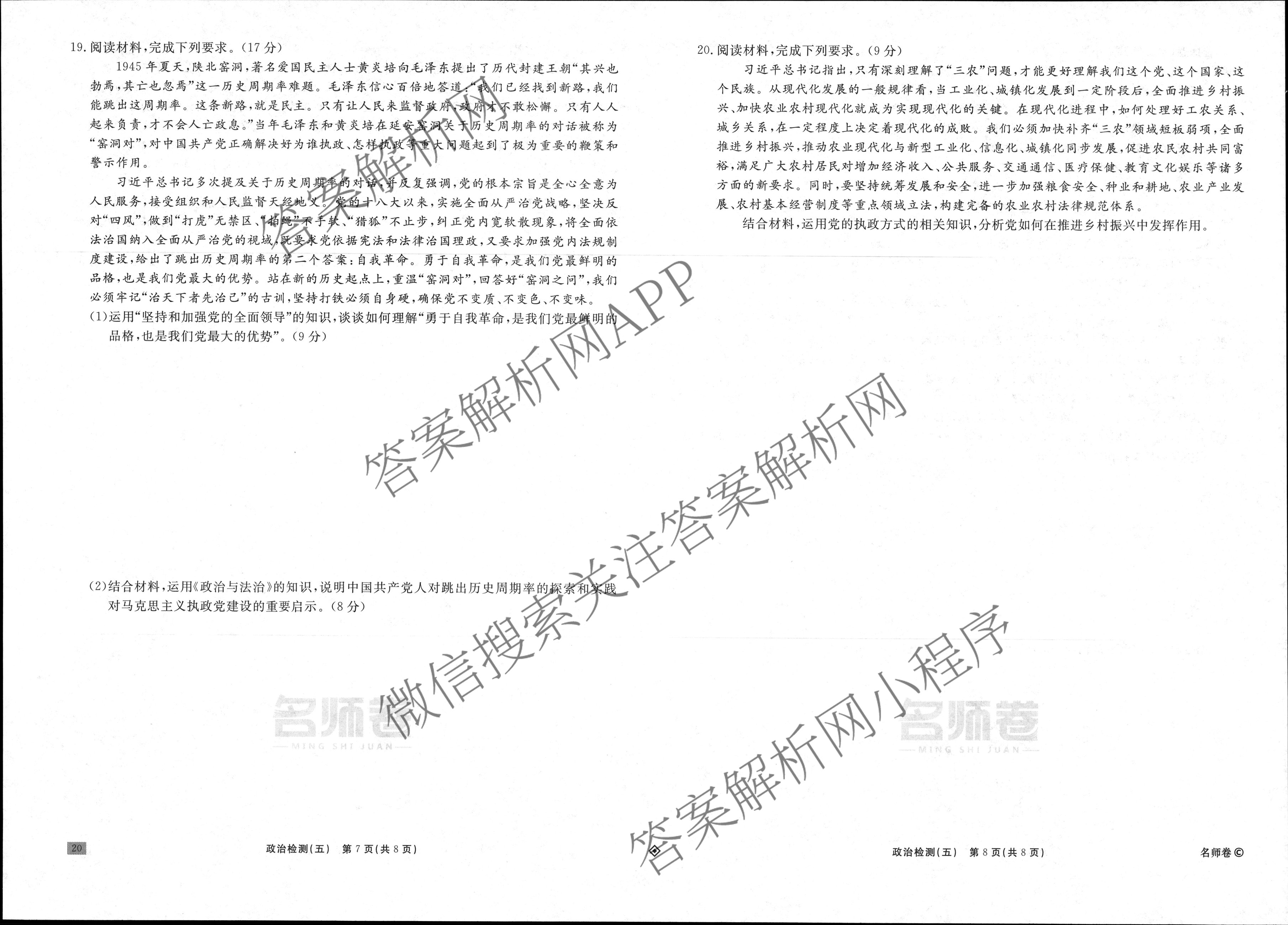 衡水名师卷·2024-2025学年度高三一轮复习单元检测卷·政治(双菱形)·检测(五)5试题,目前分科卷答案网已经汇总了衡水名师卷·2024-2025学年度高三一轮复习单元检测卷·政治(双菱形)·检测(五)5试题的各科答案和试卷,获取更多衡水名师卷答案解析,请在关注本站。