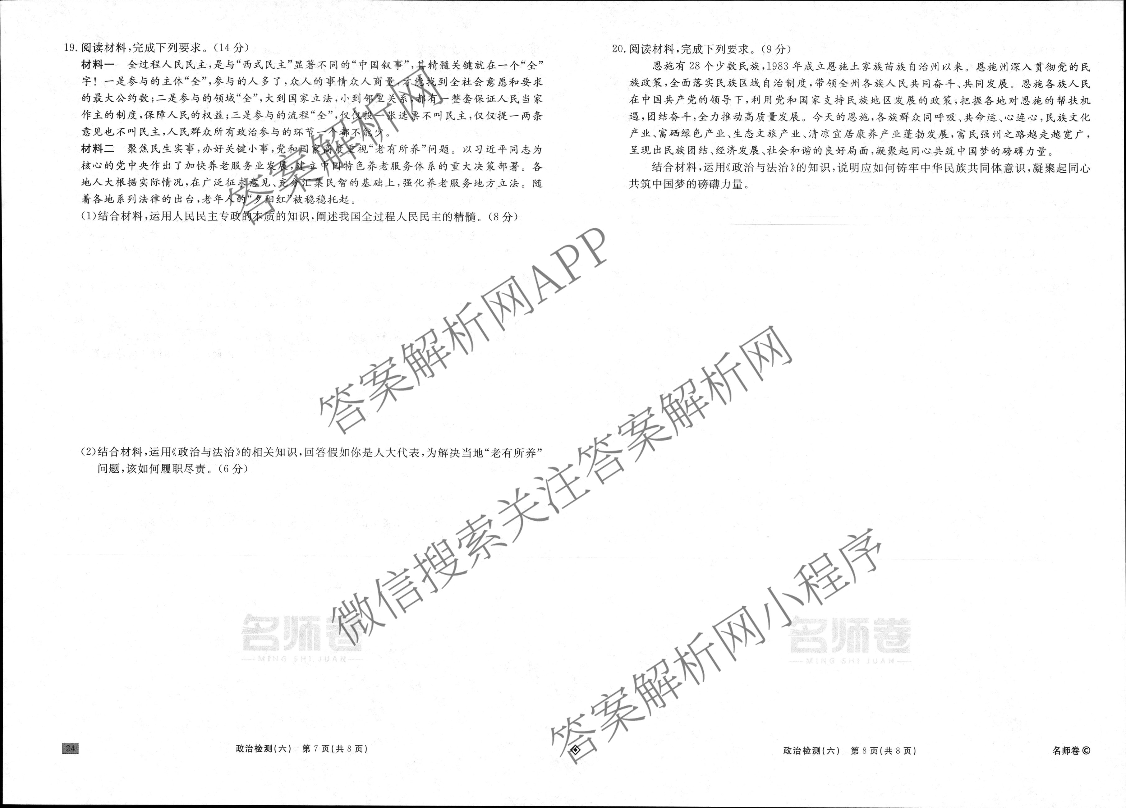 衡水名师卷·2024-2025学年度高三一轮复习单元检测卷·政治(双菱形)·检测(六)6试题,目前分科卷答案网已经汇总了衡水名师卷·2024-2025学年度高三一轮复习单元检测卷·政治(双菱形)·检测(六)6试题的各科答案和试卷,获取更多衡水名师卷答案解析,请在关注本站。