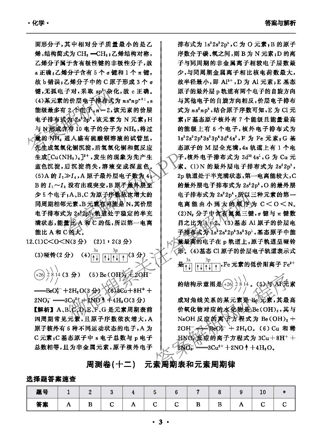- 2024-2025(高三)(衡中同卷)·学年度一轮复习周测卷 化学(J)(十一)11答案