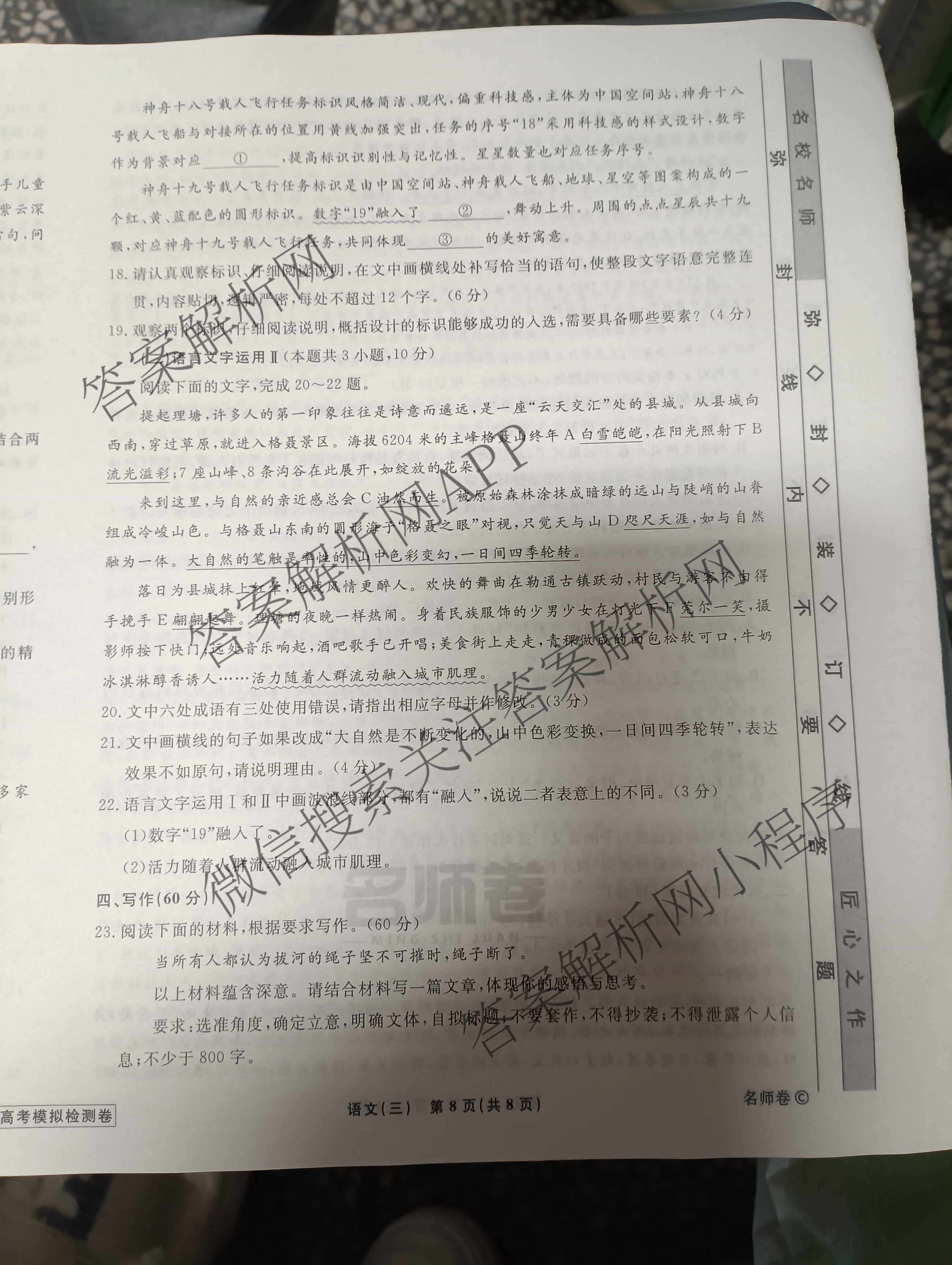 衡水名师卷·高考模拟检测卷2025年普通高等学校招生全国统一考试模拟试题(三)语文(空心菱形)试题,目前分科卷答案网已经汇总了衡水名师卷·高考模拟检测卷2025年普通高等学校招生全国统一考试模拟试题(三)语文(空心菱形)试题的各科答案和试卷,获取更多衡水名师卷答案解析,请在关注本站。