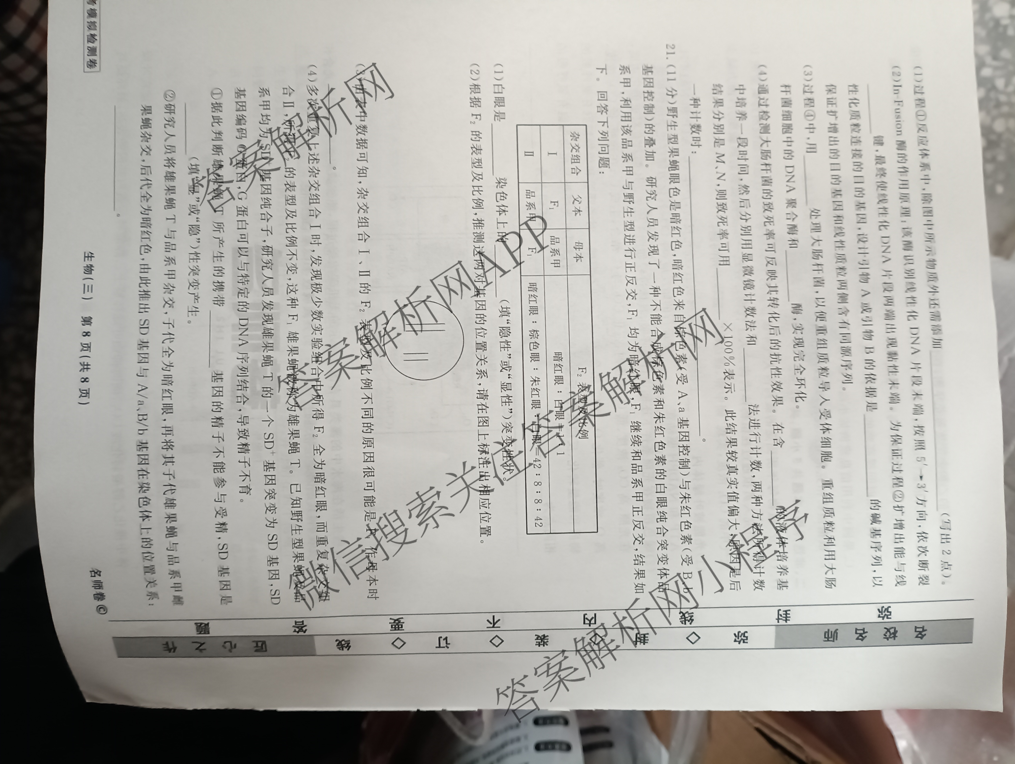 衡水名师卷·高考模拟检测卷2025年普通高等学校招生全国统一考试模拟试题(三)生物试题,目前分科卷答案网已经汇总了衡水名师卷·高考模拟检测卷2025年普通高等学校招生全国统一考试模拟试题(三)生物试题的各科答案和试卷,获取更多衡水名师卷答案解析,请在关注本站。