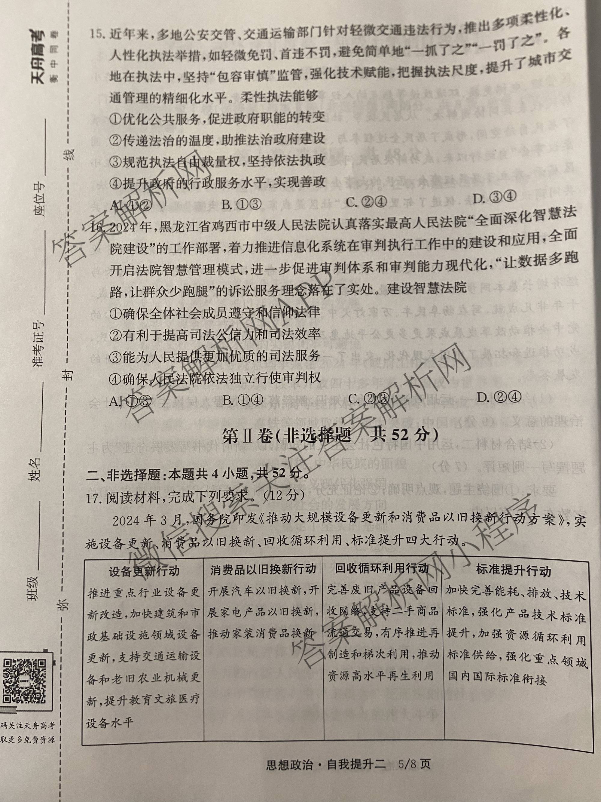 2024-2025学年度高三年级上学期自我提升二政治(A)试题,目前分科卷答案网已经汇总了2024-2025学年度高三年级上学期自我提升二政治(A)试题的各科答案和试卷,获取更多衡中同卷答案解析,请在关注本站。