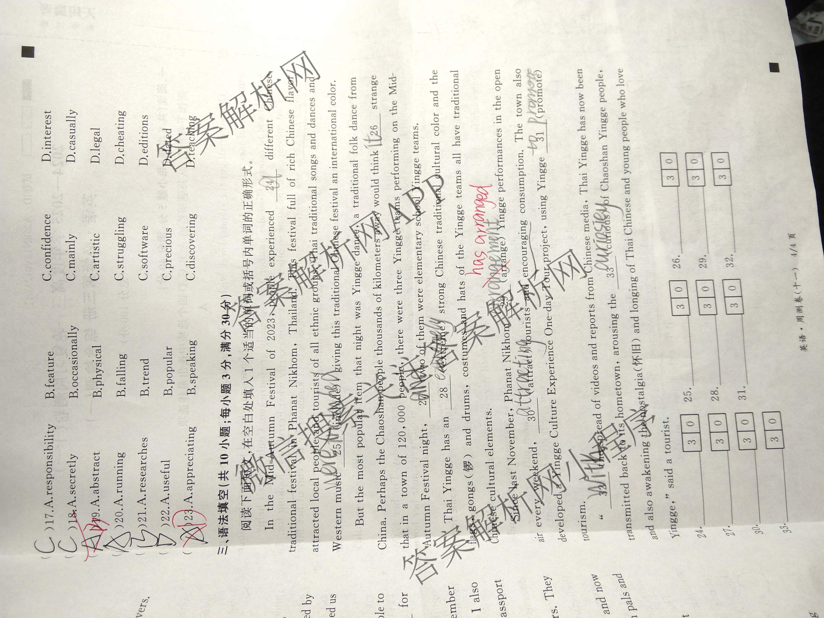 - 2024-2025(高三)(衡中同卷)学年度一轮复习周测卷 英语(大题量)(十一)11答案