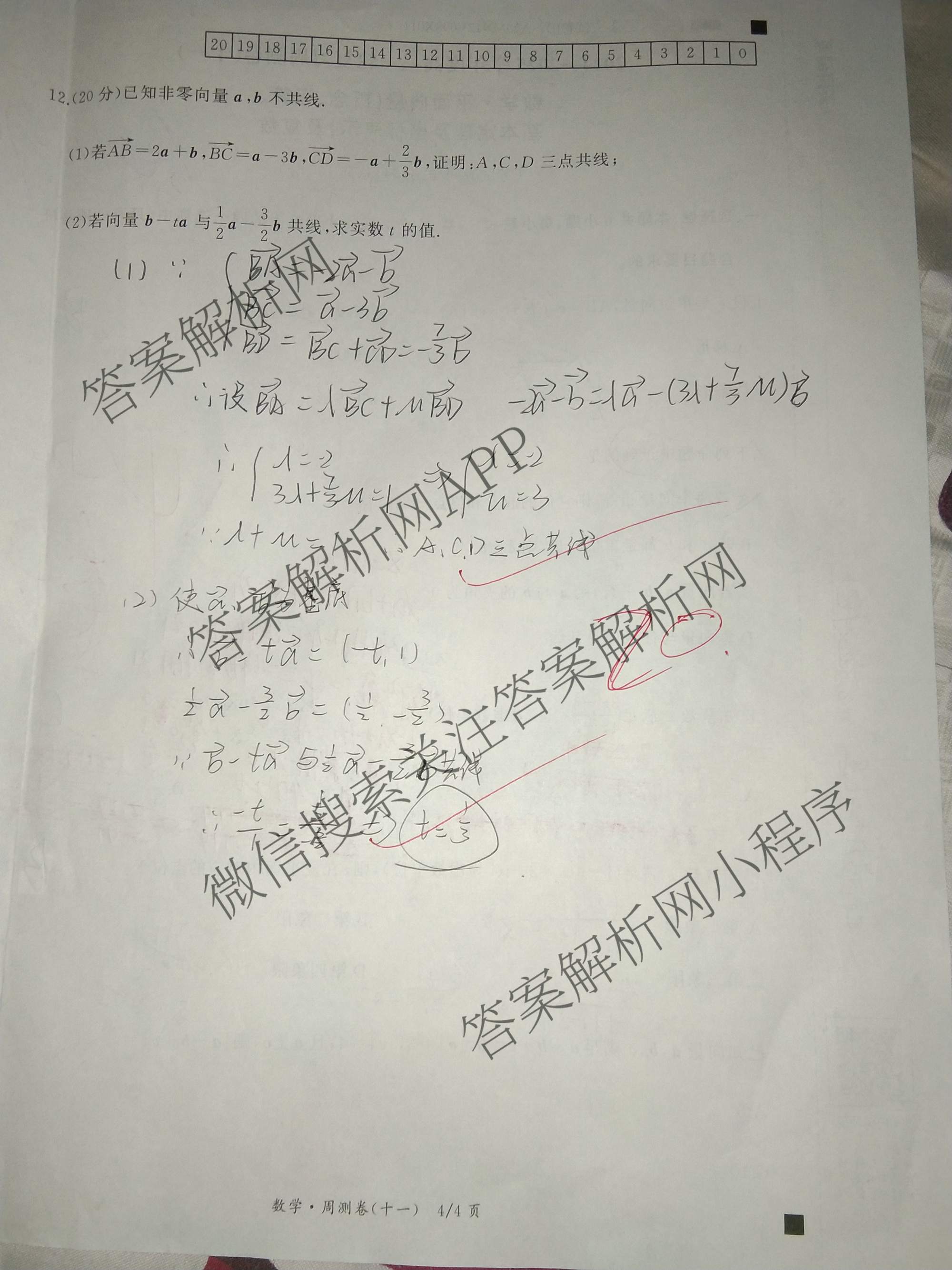 - [衡中同卷]2024~2025学年度(高三)一轮复习周测卷 数学((小题量))(十一)11答案