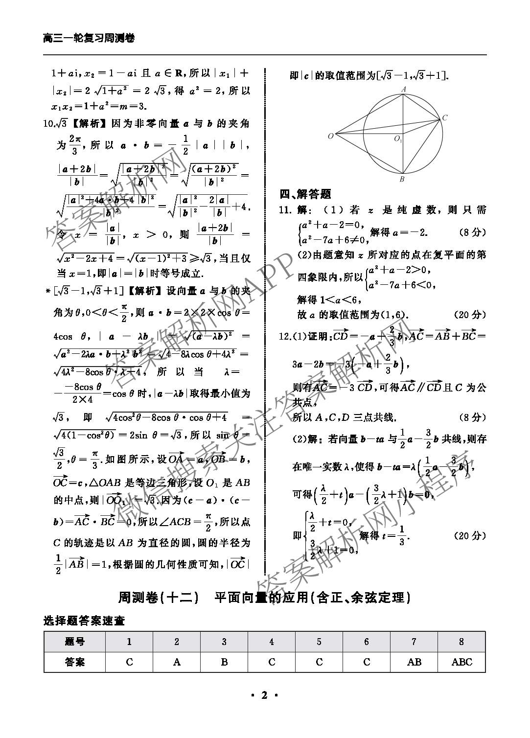 - [衡中同卷]2024~2025学年度(高三)一轮复习周测卷 数学((小题量))(十一)11答案