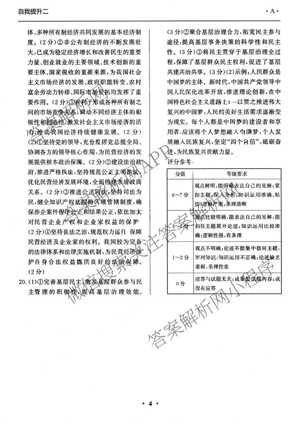 - 2024~2025(高三)学年度年级上学期自我提升二政治(A)答案