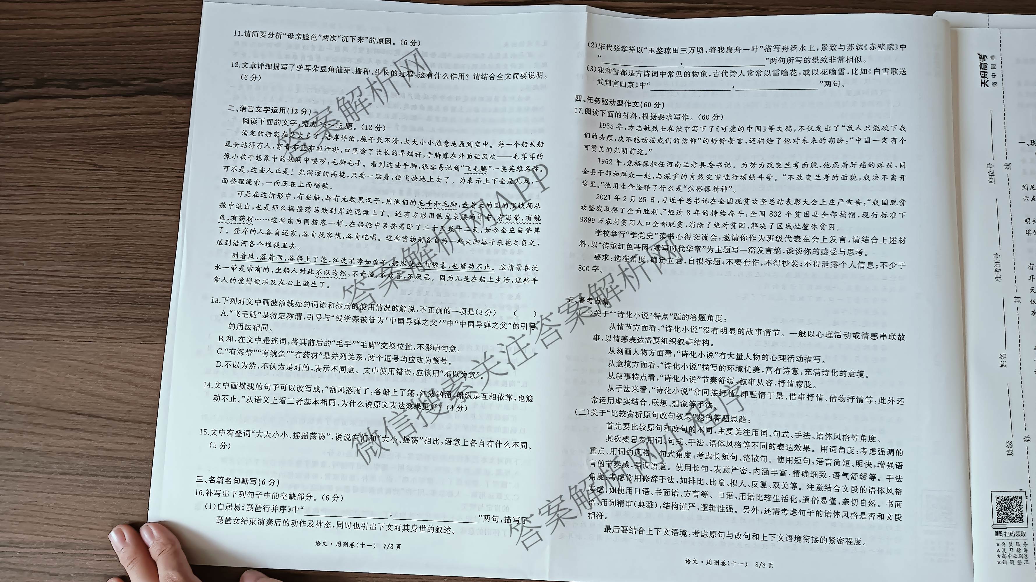 - (高三)(衡中同卷)2024-2025学年度一轮复习周测卷 语文(小题量)(十一)11答案