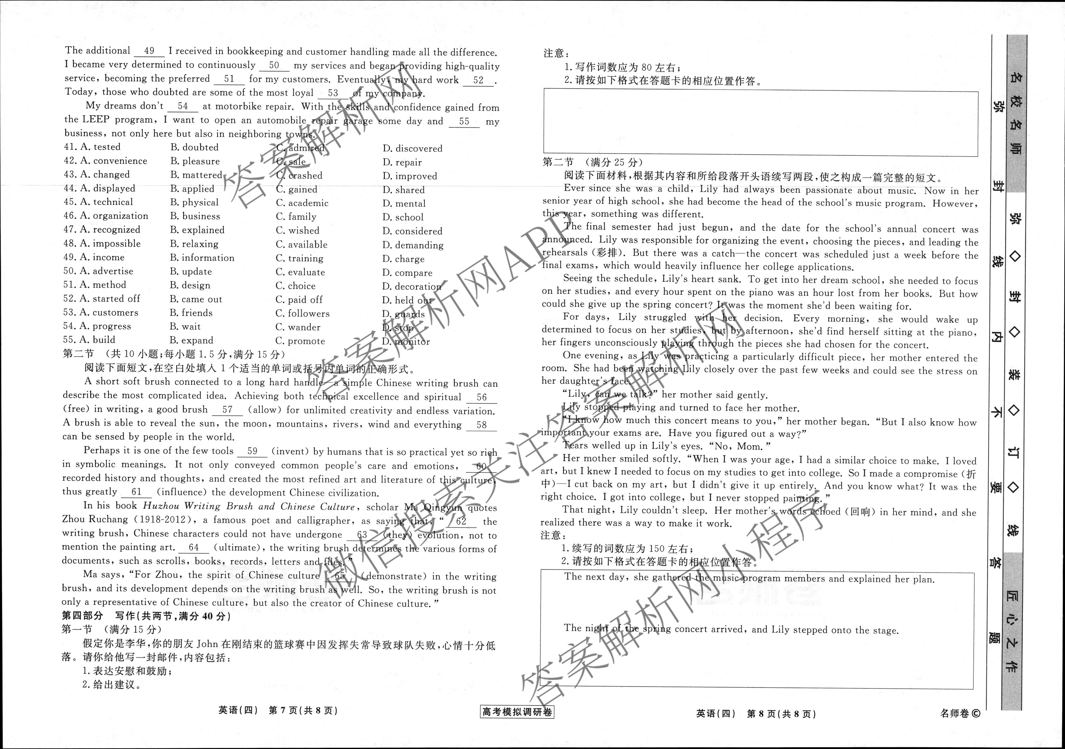 衡水名师卷高考模拟调研卷 2025年普通高等学校招生全国统一考试模拟试题(四)4英语试题