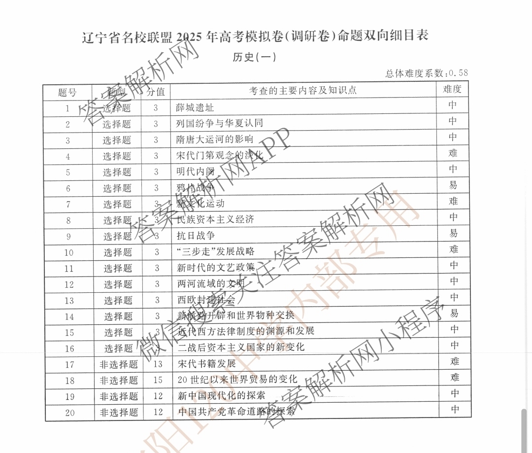 - [高三]辽宁省名校联盟2025年高考模拟卷(调研卷)(一)1历史试题