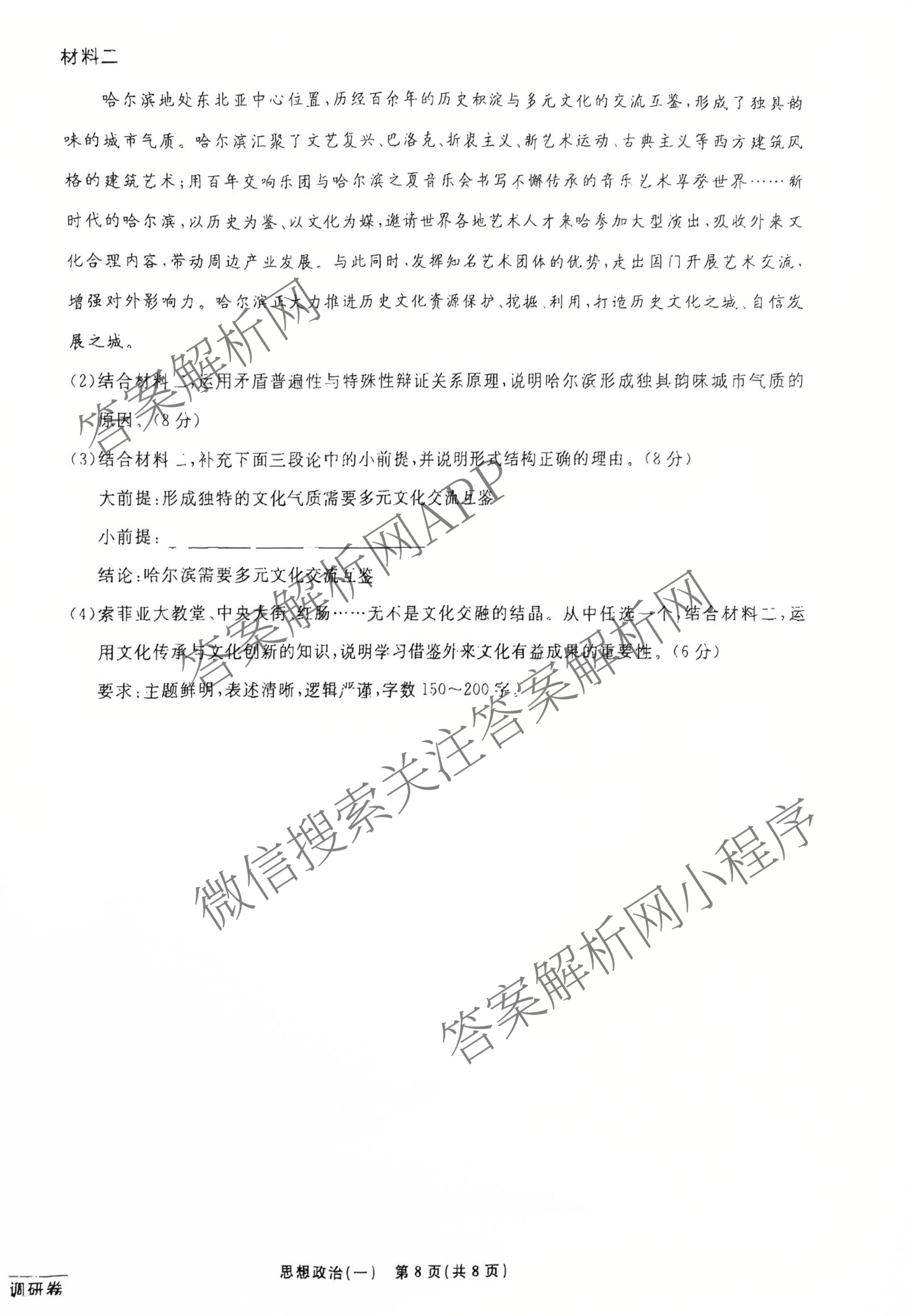 辽宁省名校联盟2025年高考模拟卷(调研卷)(一)1政治试题,目前分科卷答案网已经汇总了辽宁省名校联盟2025年高考模拟卷(调研卷)(一)1政治试题的各科答案和试卷,获取更多衡水名师卷答案解析,请在关注本站。