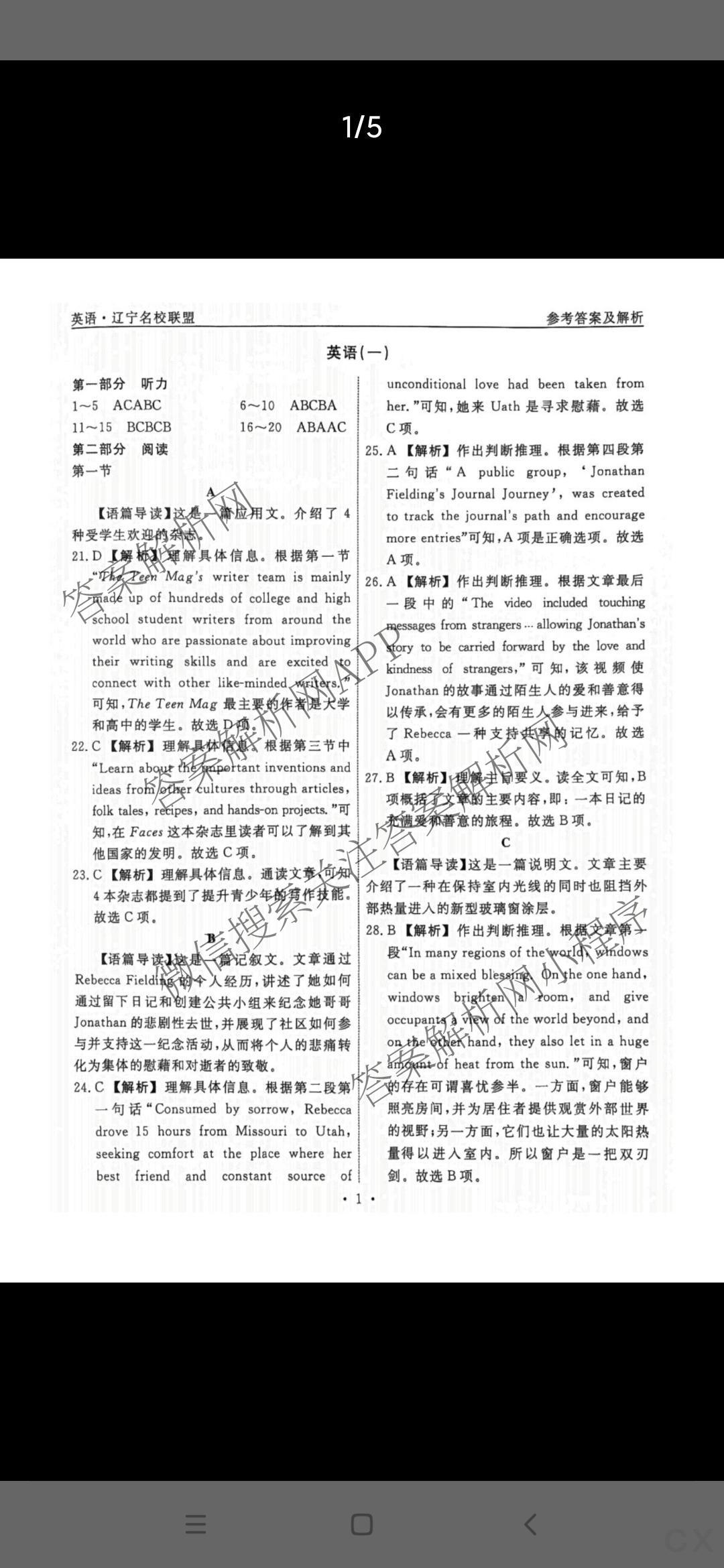 辽宁省名校联盟2025年高考模拟卷(调研卷)(一)1英语答案,目前分科卷答案网已经汇总了辽宁省名校联盟2025年高考模拟卷(调研卷)(一)1英语答案的各科答案和试卷,获取更多衡水名师卷答案解析,请在关注本站。