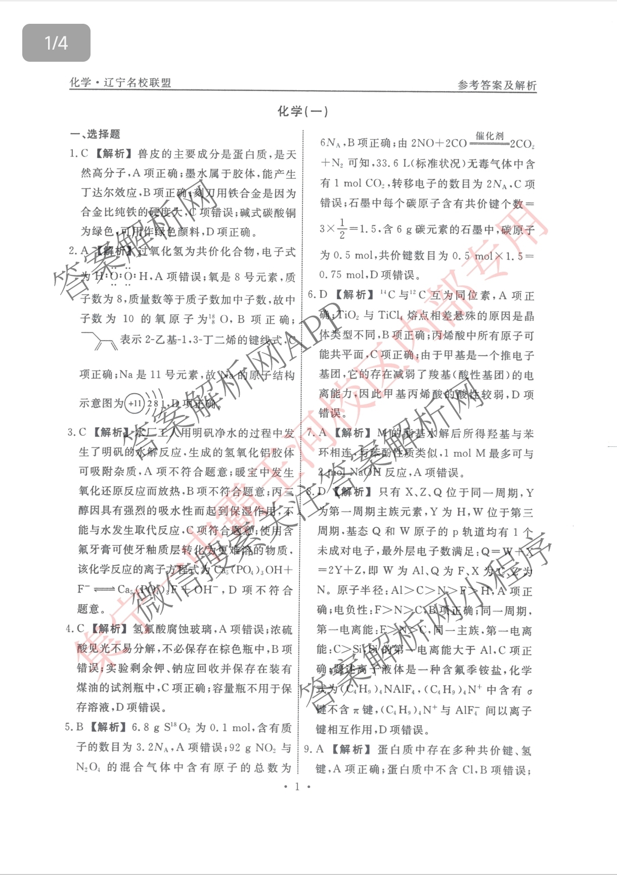 辽宁省名校联盟2025年高考模拟卷(调研卷)(一)1化学答案,目前分科卷答案网已经汇总了辽宁省名校联盟2025年高考模拟卷(调研卷)(一)1化学答案的各科答案和试卷,获取更多衡水名师卷答案解析,请在关注本站。