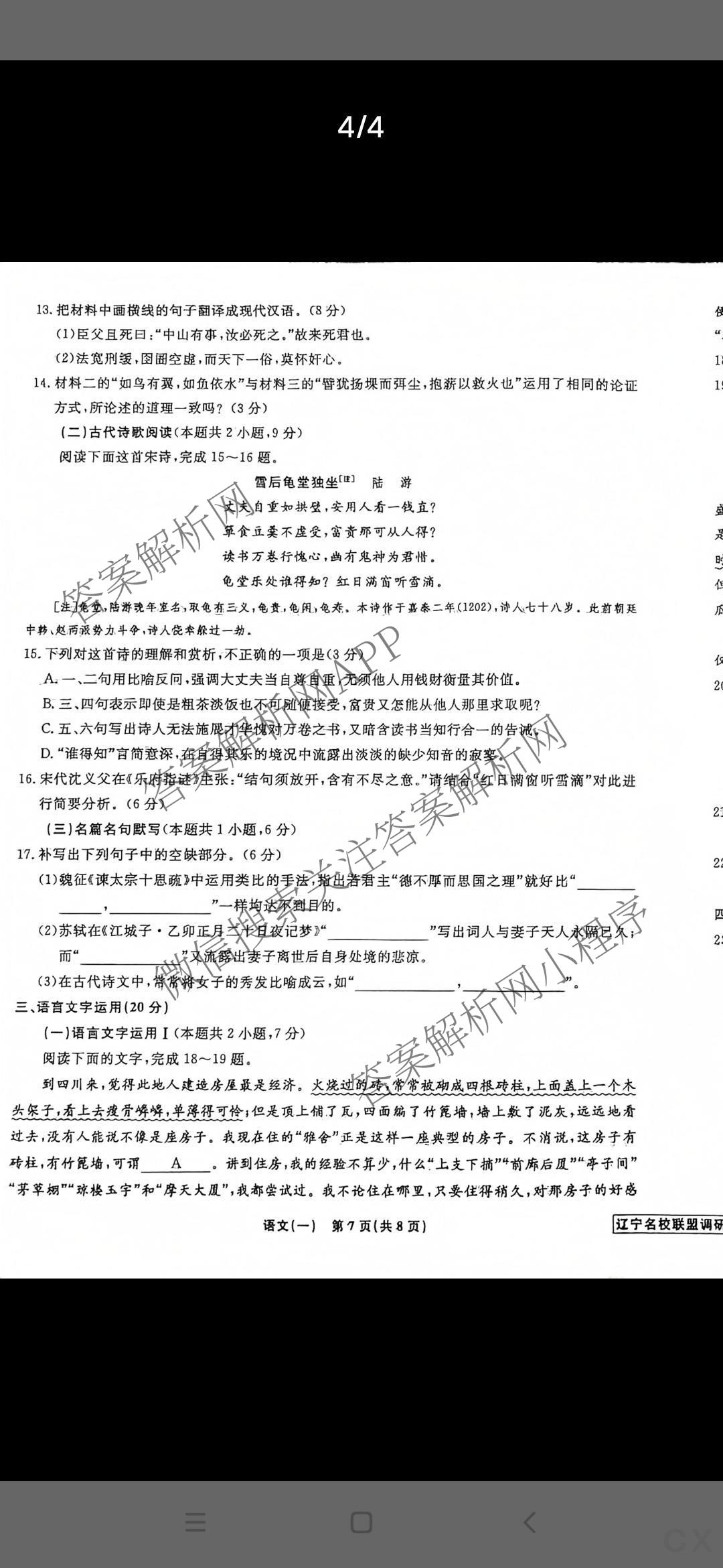 辽宁省名校联盟2025年高考模拟卷(调研卷)(一)1语文试题,目前分科卷答案网已经汇总了辽宁省名校联盟2025年高考模拟卷(调研卷)(一)1语文试题的各科答案和试卷,获取更多衡水名师卷答案解析,请在关注本站。