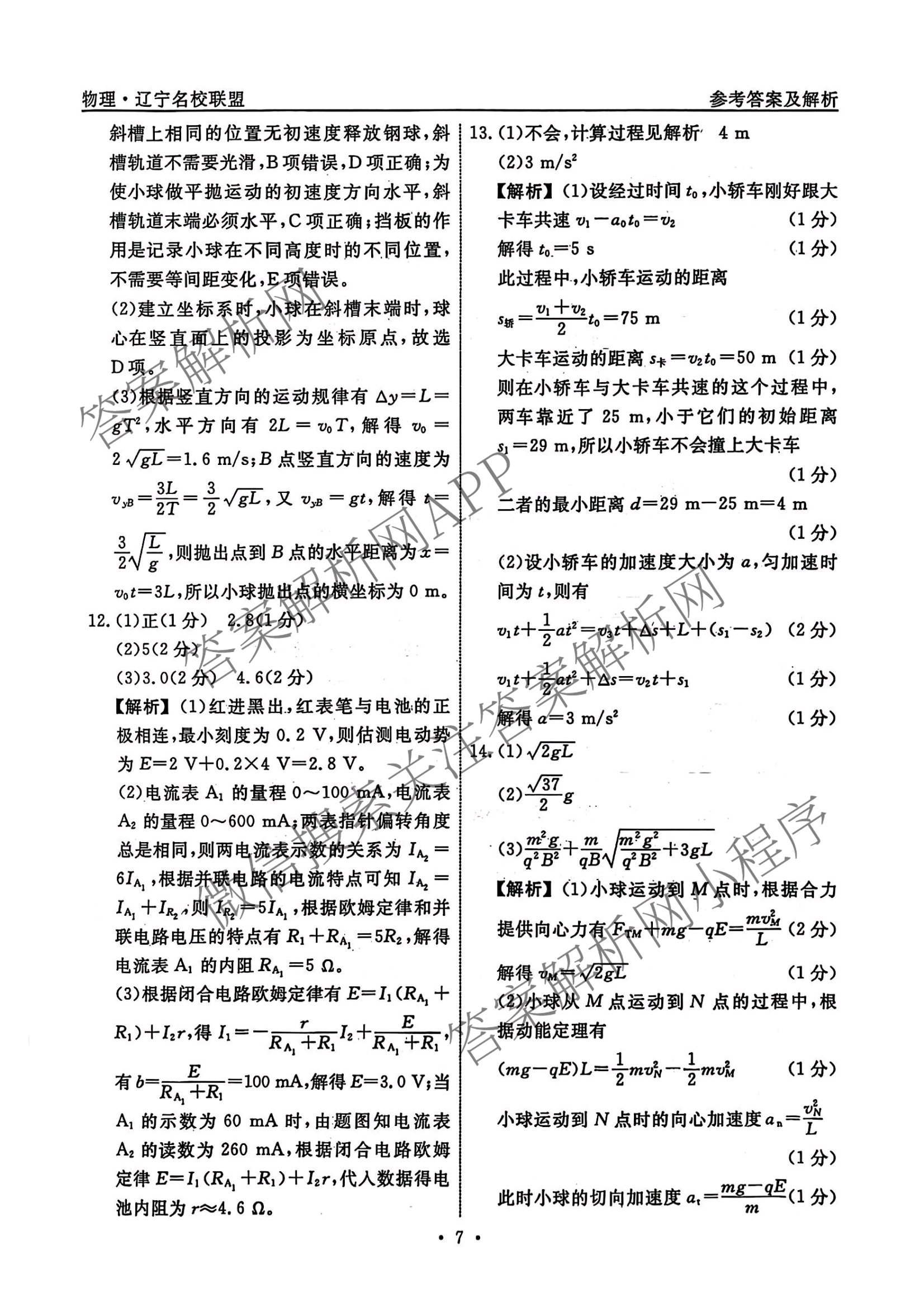 辽宁省名校联盟2025年高考模拟卷(调研卷)(二)2物理答案,目前分科卷答案网已经汇总了辽宁省名校联盟2025年高考模拟卷(调研卷)(二)2物理答案的各科答案和试卷,获取更多衡水名师卷答案解析,请在关注本站。