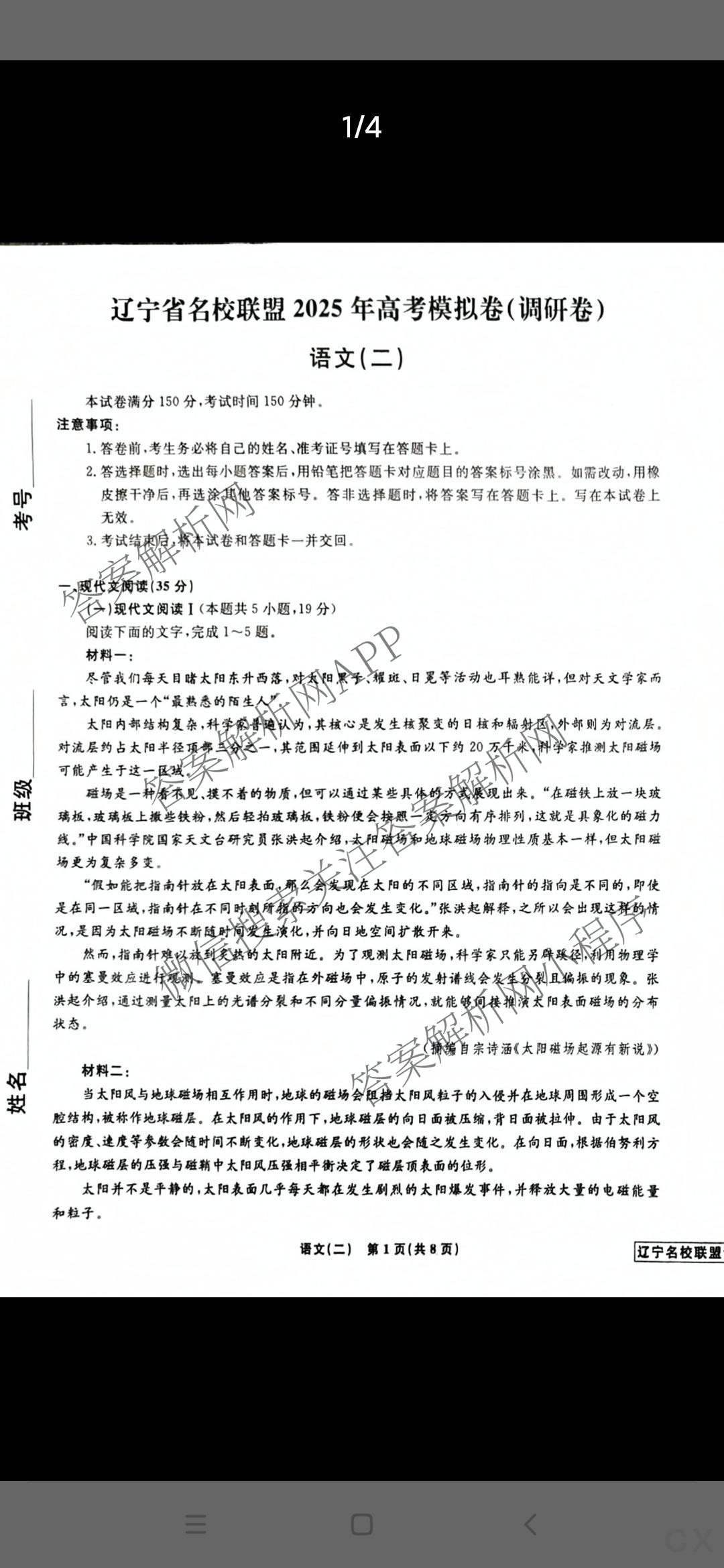 辽宁省名校联盟2025年高考模拟卷(调研卷)(二)2语文试题,目前分科卷答案网已经汇总了辽宁省名校联盟2025年高考模拟卷(调研卷)(二)2语文试题的各科答案和试卷,获取更多衡水名师卷答案解析,请在关注本站。