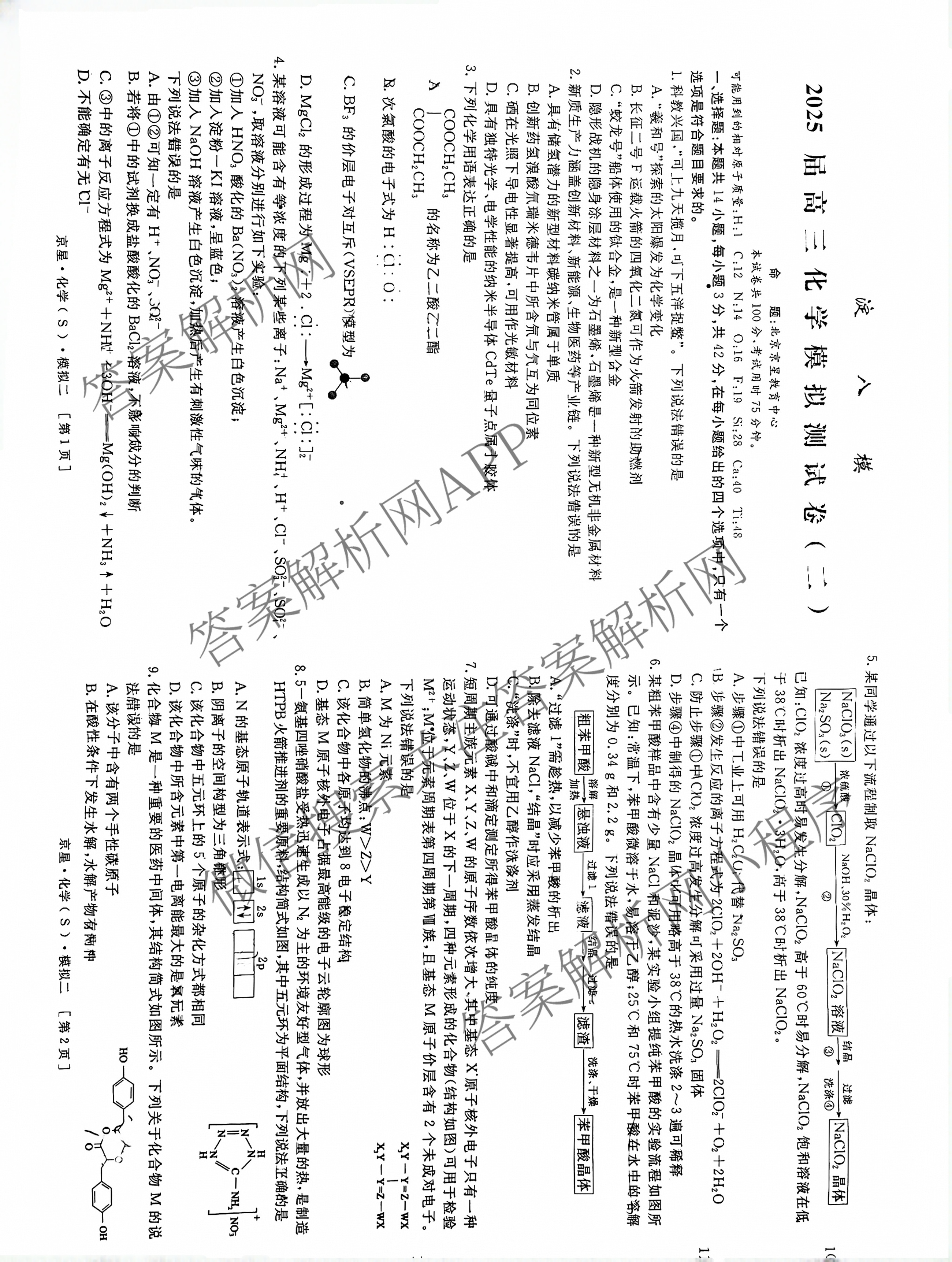 海淀八模·2025届高三化学(S)模拟测试卷(二)2化学(S)试题,目前分科卷答案网已经汇总了海淀八模·2025届高三化学(S)模拟测试卷(二)2化学(S)试题的各科答案和试卷,获取更多海淀八模答案解析,请在关注本站。