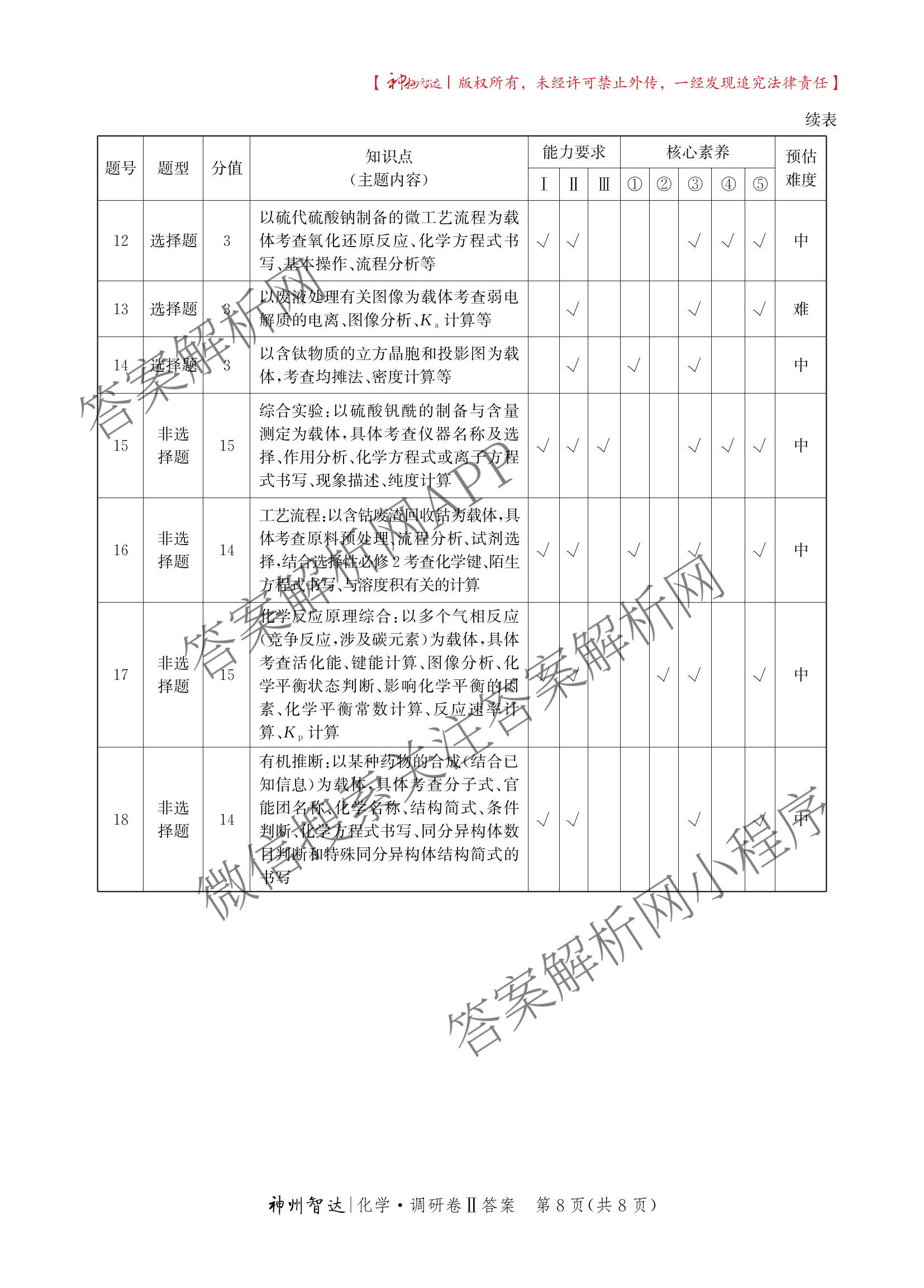 - [高三]神州智达2025年普通高等学校招生全国统一考试(调研卷II)化学答案