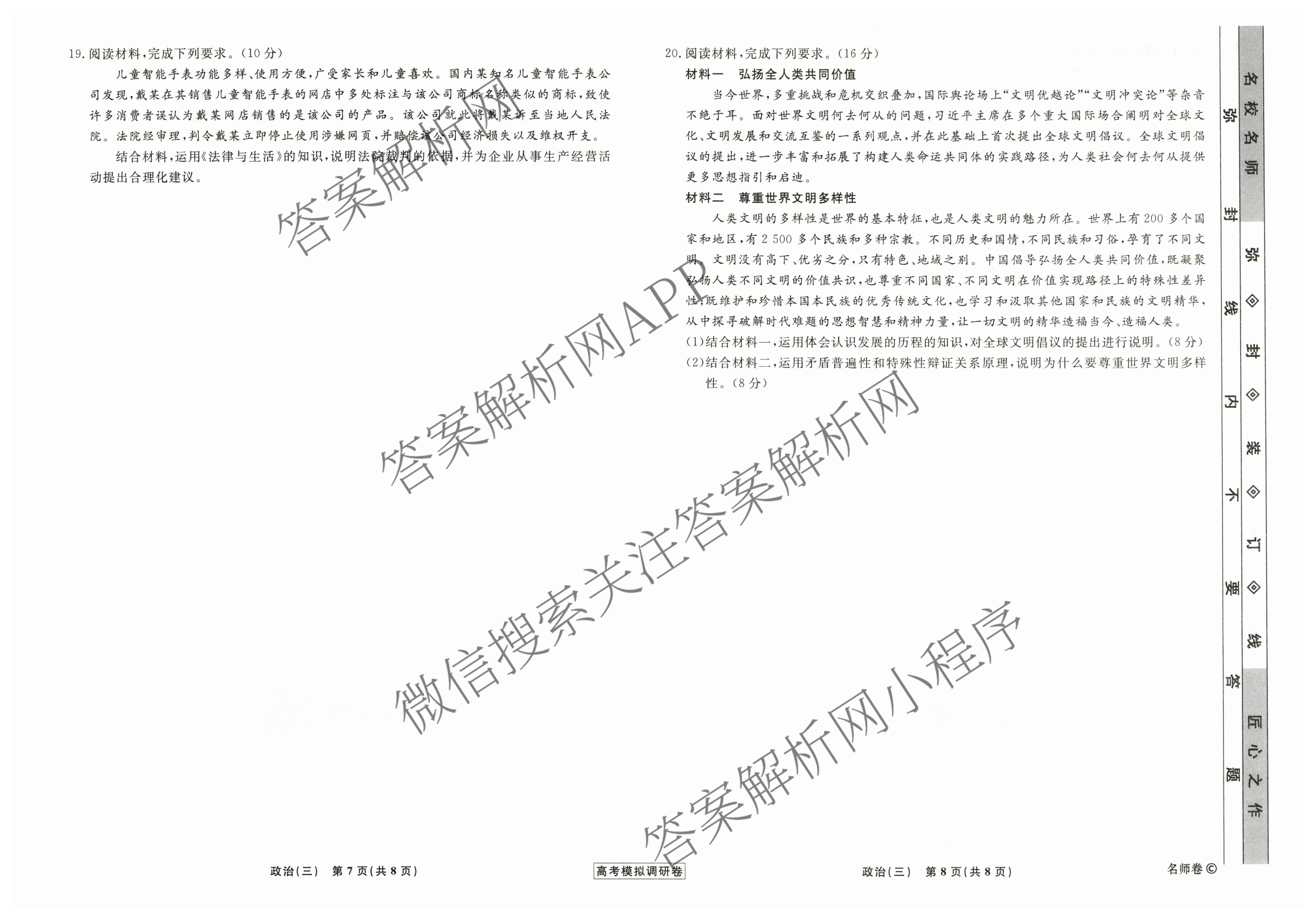 衡水名师卷·高考模拟调研卷 2025年普通高等学校招生全国统一考试模拟试题(三)3政治(双菱形)试题,目前分科卷答案网已经汇总了衡水名师卷·高考模拟调研卷 2025年普通高等学校招生全国统一考试模拟试题(三)3政治(双菱形)试题的各科答案和试卷,获取更多衡水名师卷答案解析,请在关注本站。