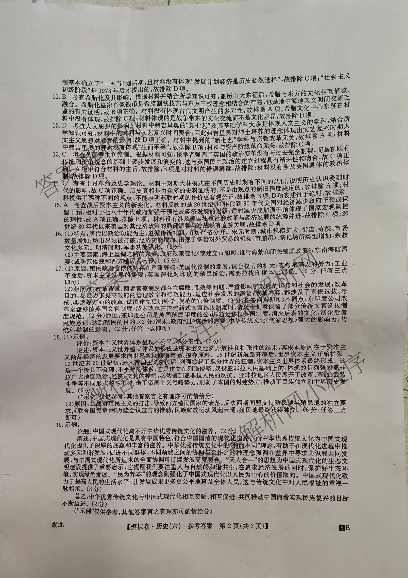 - 2025届(全国高考分科模拟调研卷)(六)6历史(湖北)答案