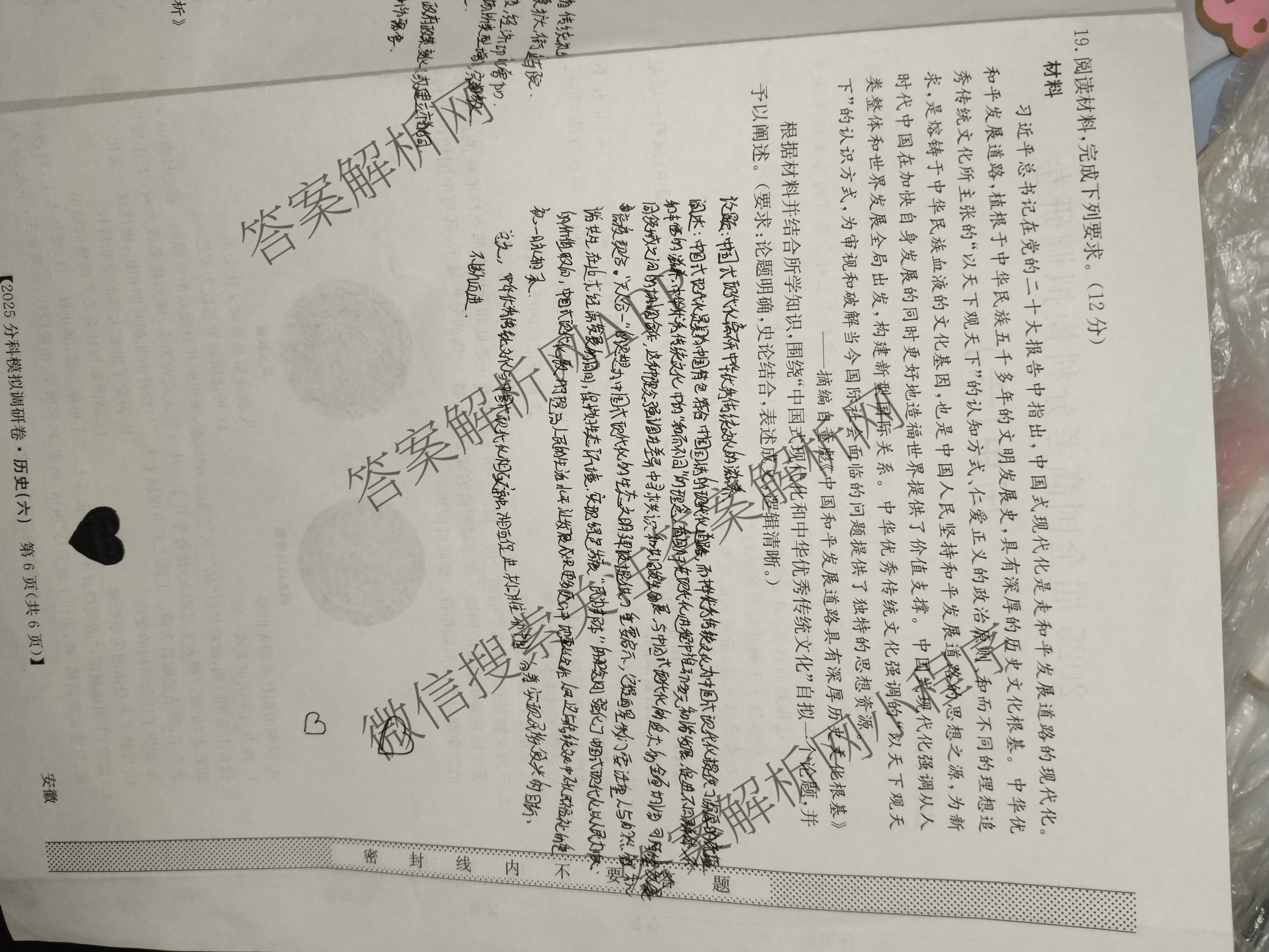 - [高三]2025届全国高考分科模拟调研卷(六)6政治(安徽)答案