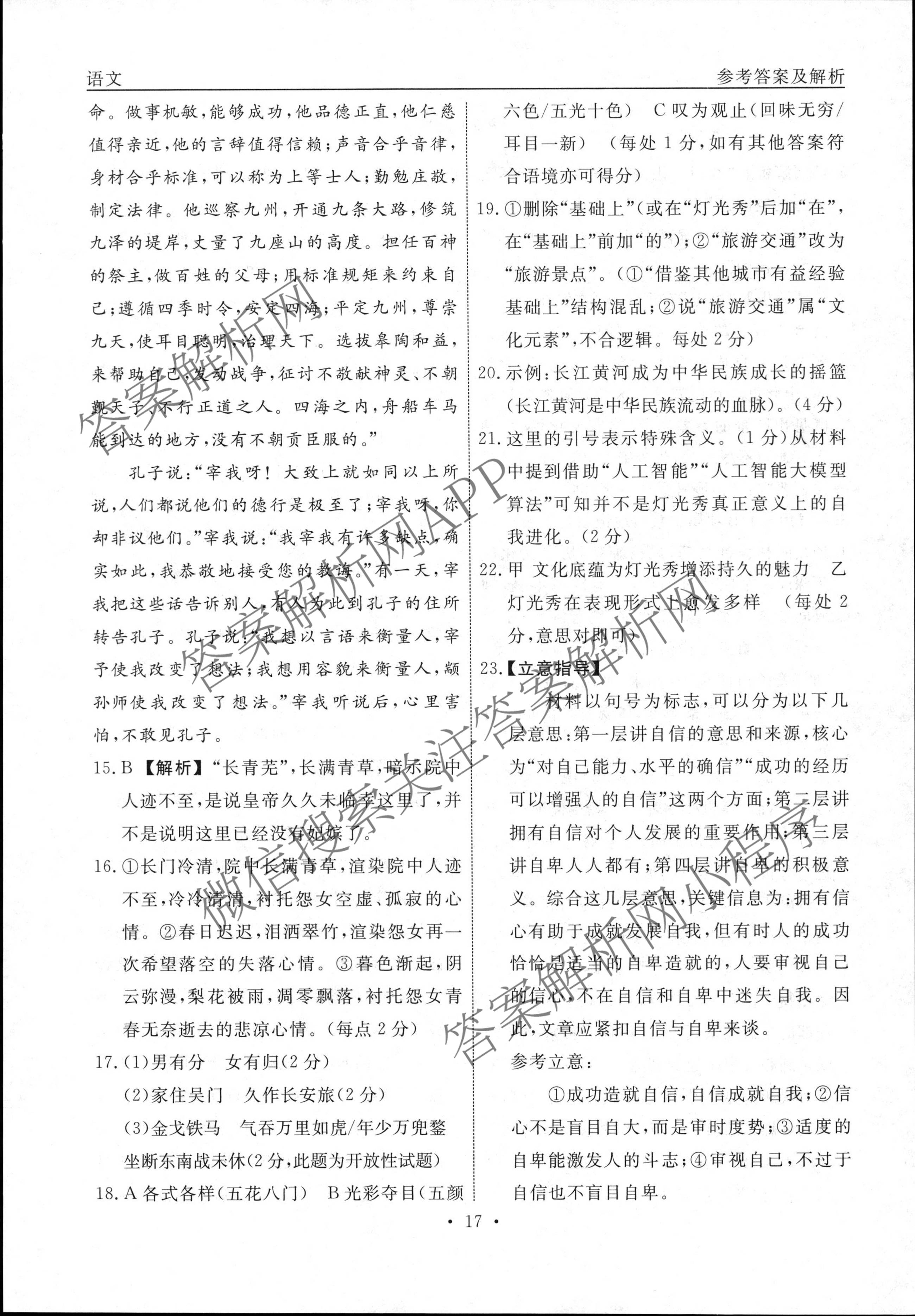 衡水名师卷高考模拟调研卷 2025年普通高等学校招生全国统一考试模拟试题(五)5语文(空心菱形)答案