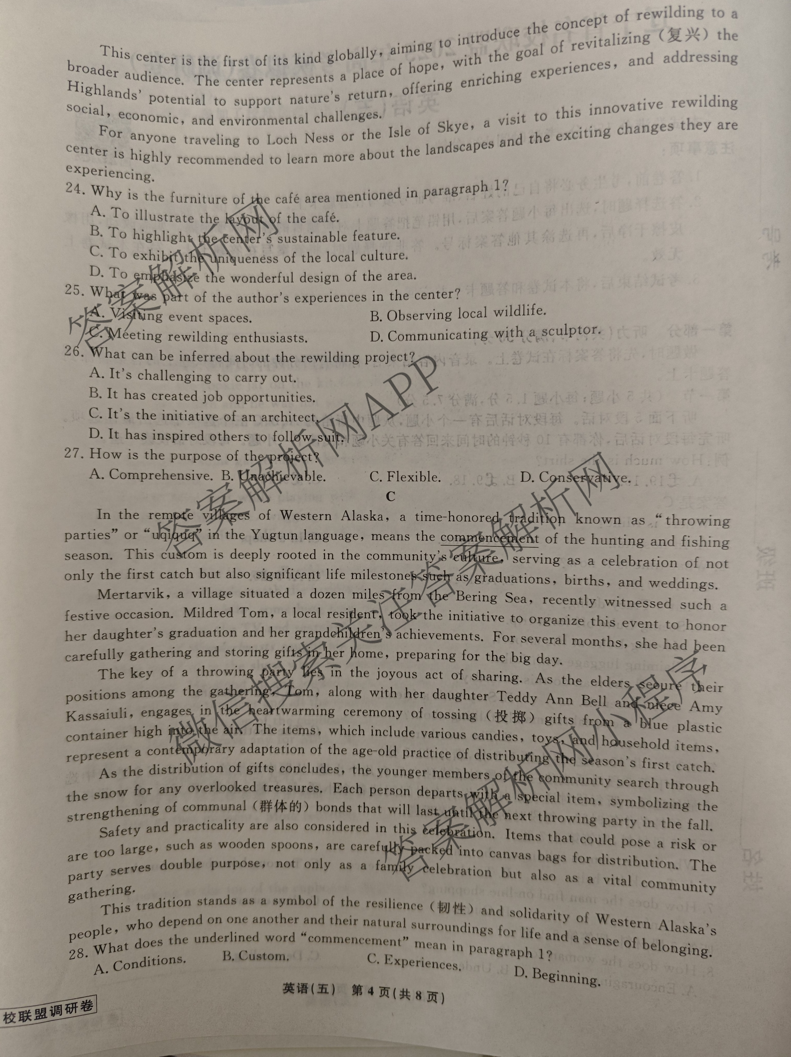 辽宁省名校联盟2025年高考模拟卷(调研卷)(五)5英语试题,目前分科卷答案网已经汇总了辽宁省名校联盟2025年高考模拟卷(调研卷)(五)5英语试题的各科答案和试卷,获取更多衡水名师卷答案解析,请在关注本站。