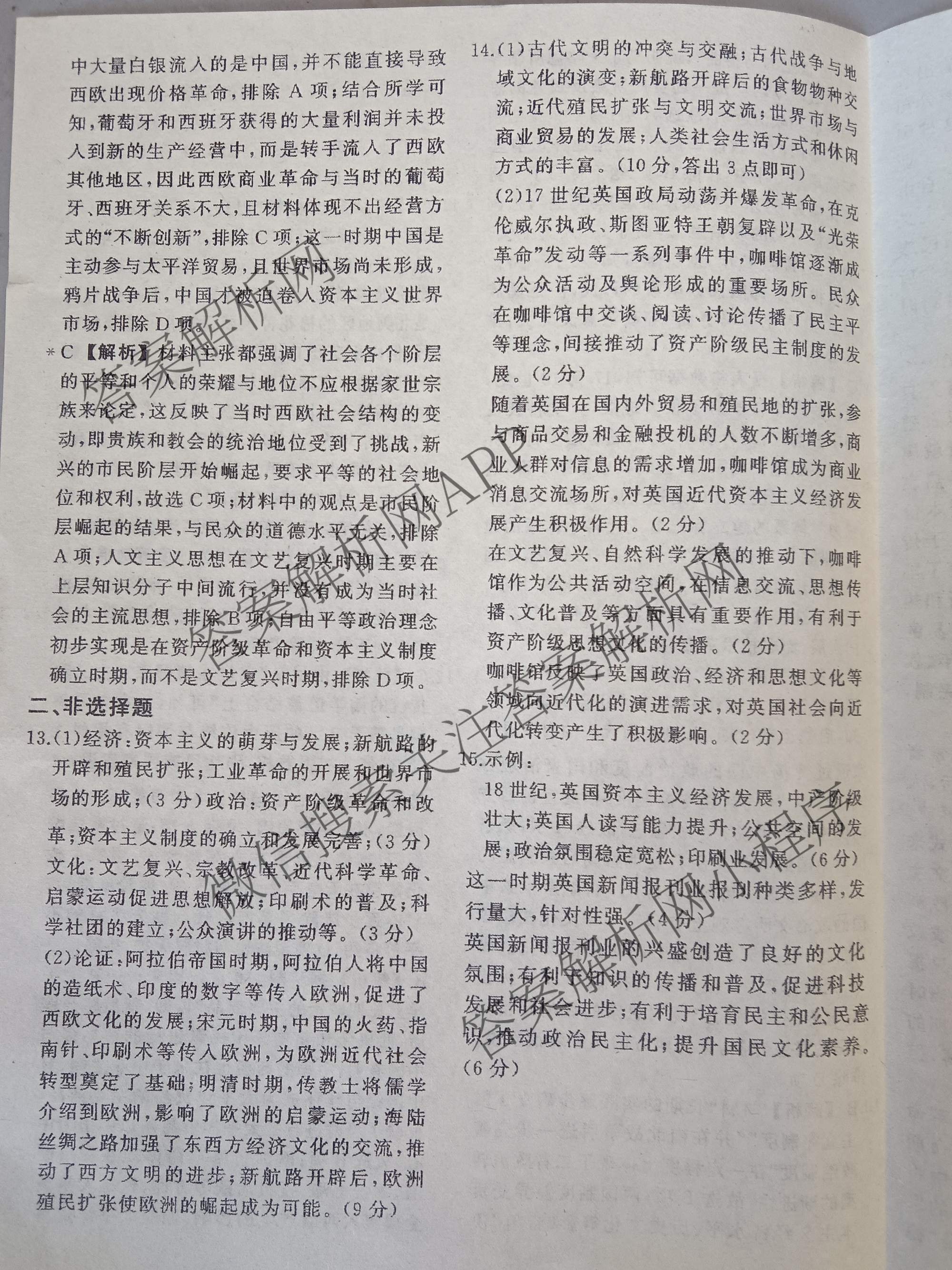 (高三)[衡中同卷]·2024~2025学年度一轮复习周测卷 历史(小题量)(十一)11答案