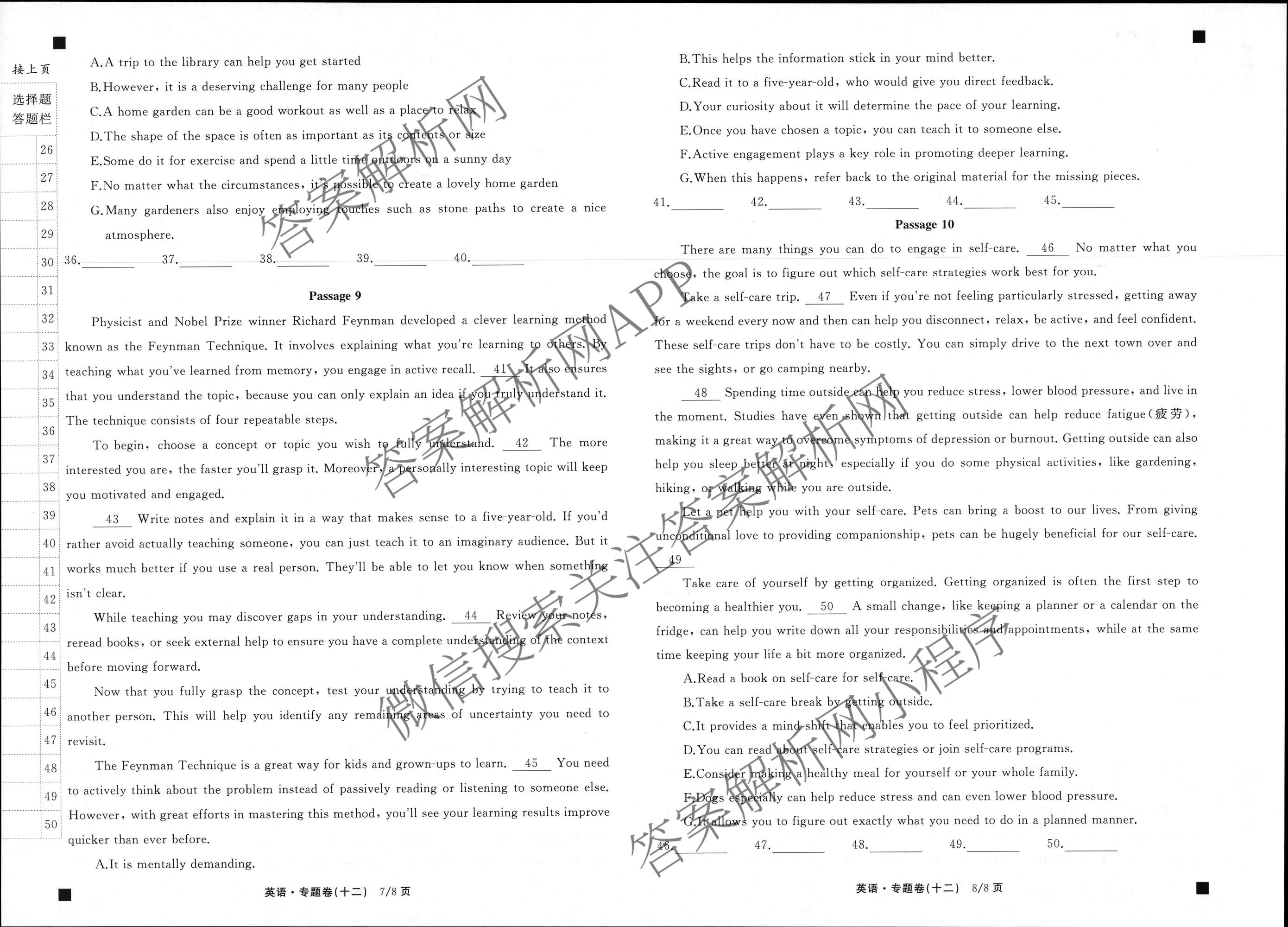 衡中同卷2024-2025学年度高考总复习专题卷(十二)12英语试题
