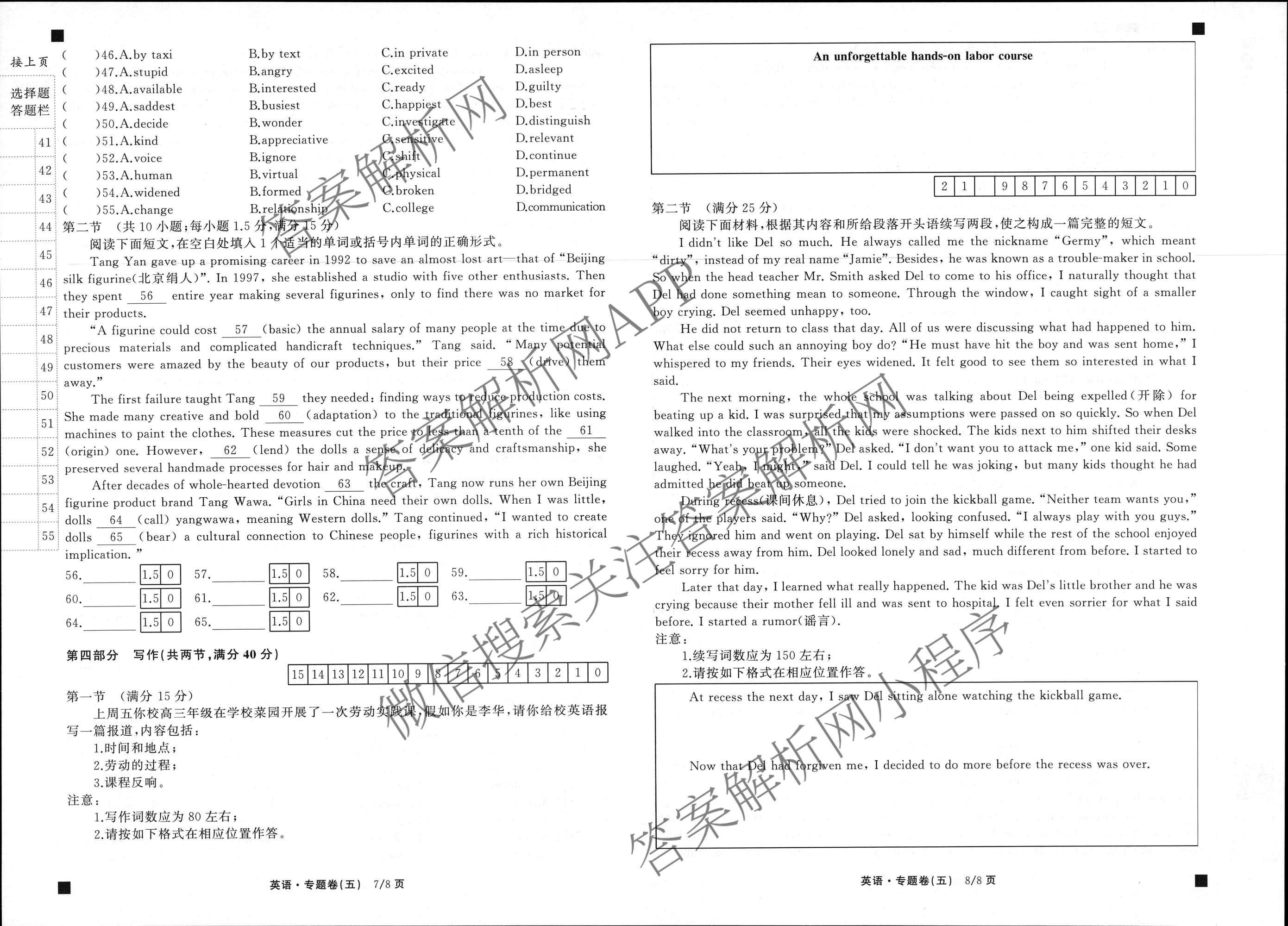 衡中同卷2024-2025学年度高考总复习专题卷(五)5英语试题