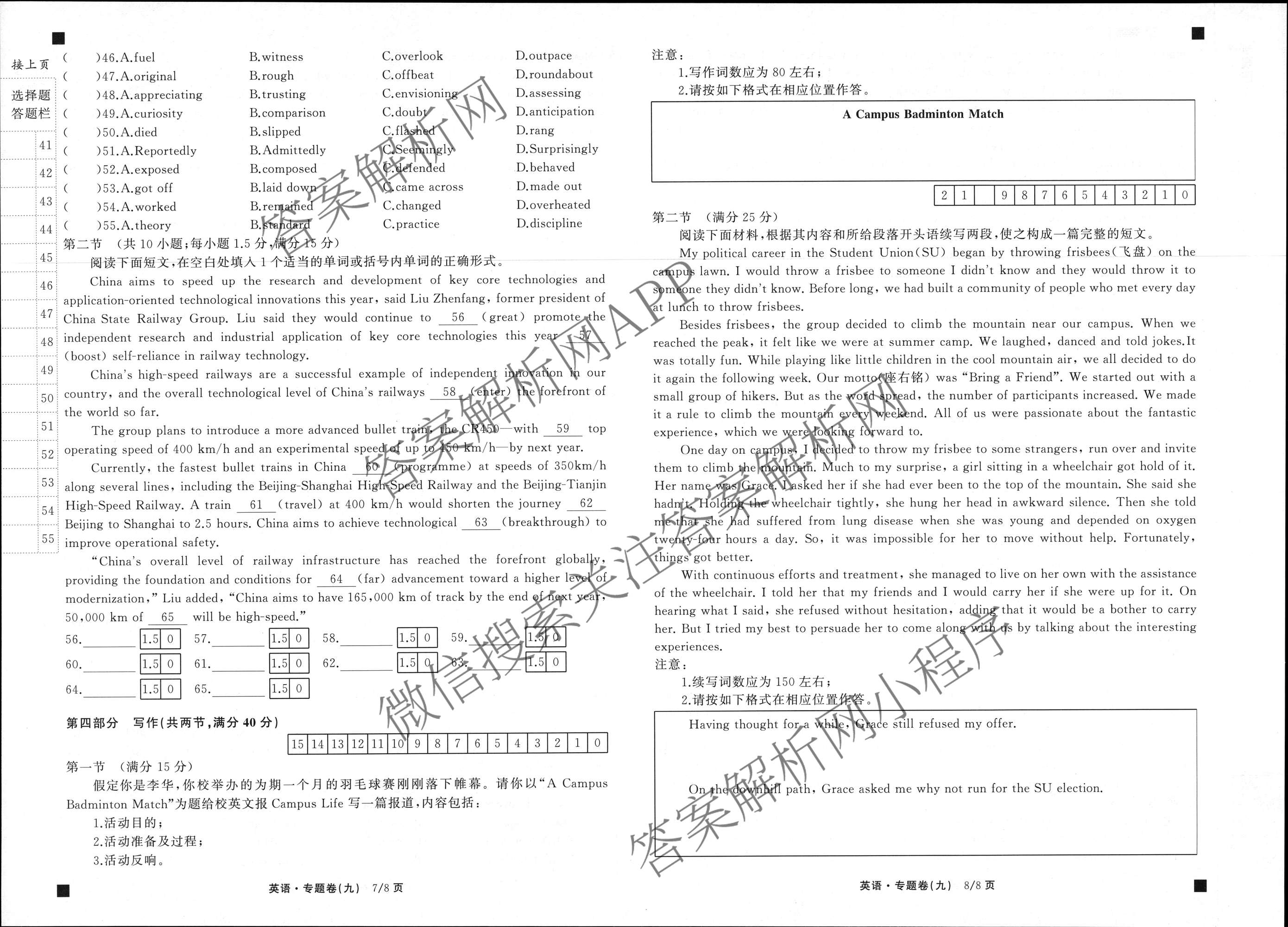 衡中同卷·2024-2025学年度高考总复习专题卷(九)9英语试题,目前分科卷答案网已经汇总了衡中同卷·2024-2025学年度高考总复习专题卷(九)9英语试题的各科答案和试卷,获取更多衡中同卷答案解析,请在关注本站。