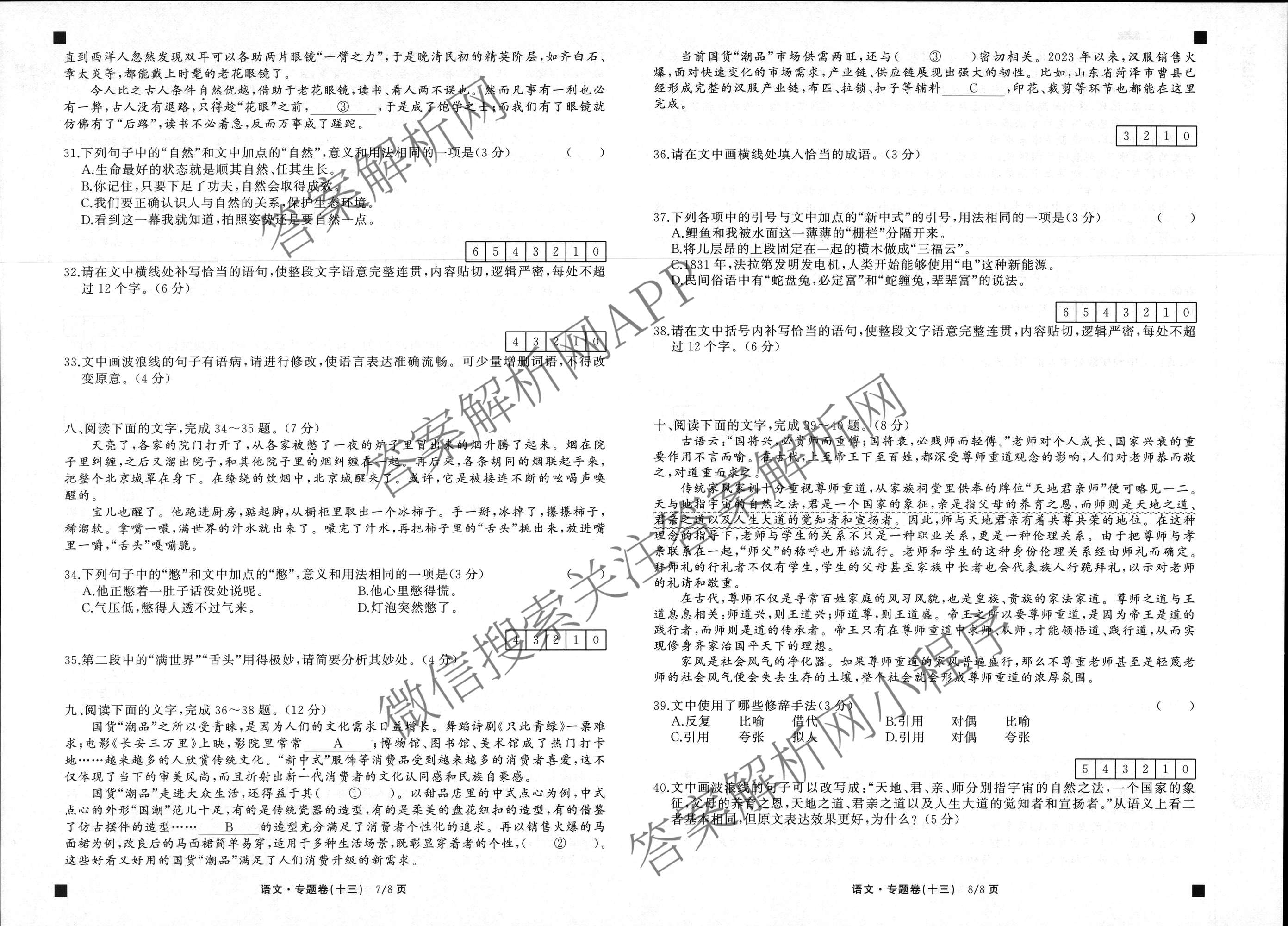 衡中同卷2024-2025学年度高考总复习专题卷(十三)13语文试题