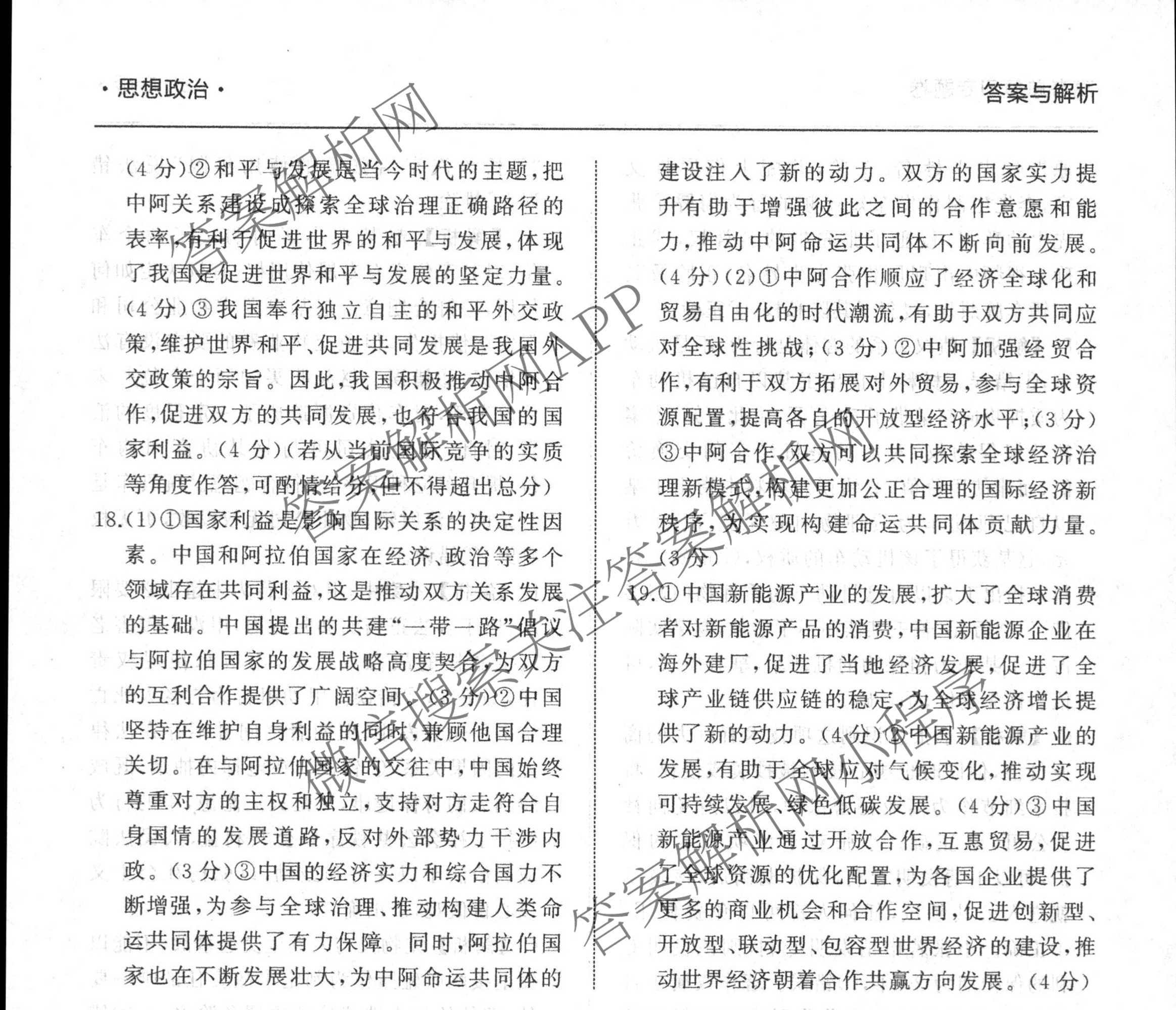 衡中同卷2024-2025学年度高考总复习专题卷(十一)11政治(SD专版)答案