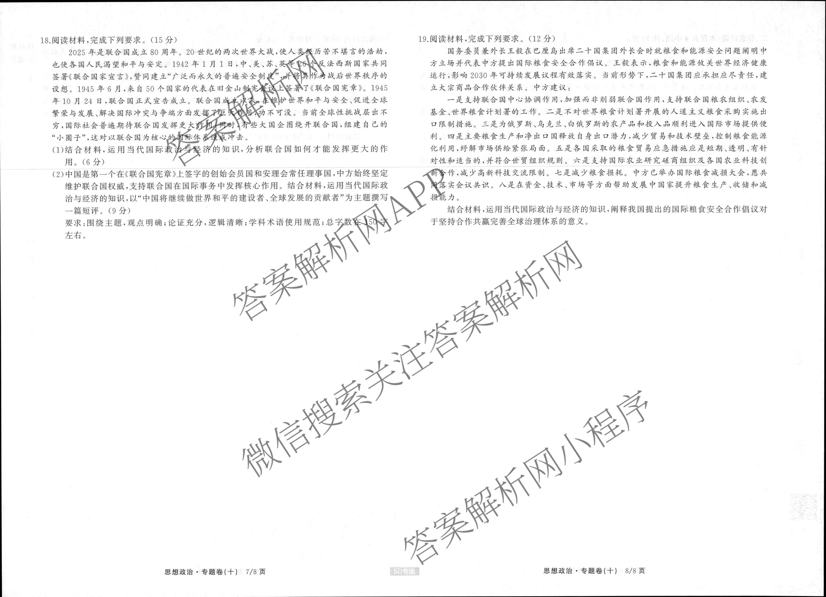 衡中同卷2024-2025学年度高考总复习专题卷(十)10政治(SD专版)试题