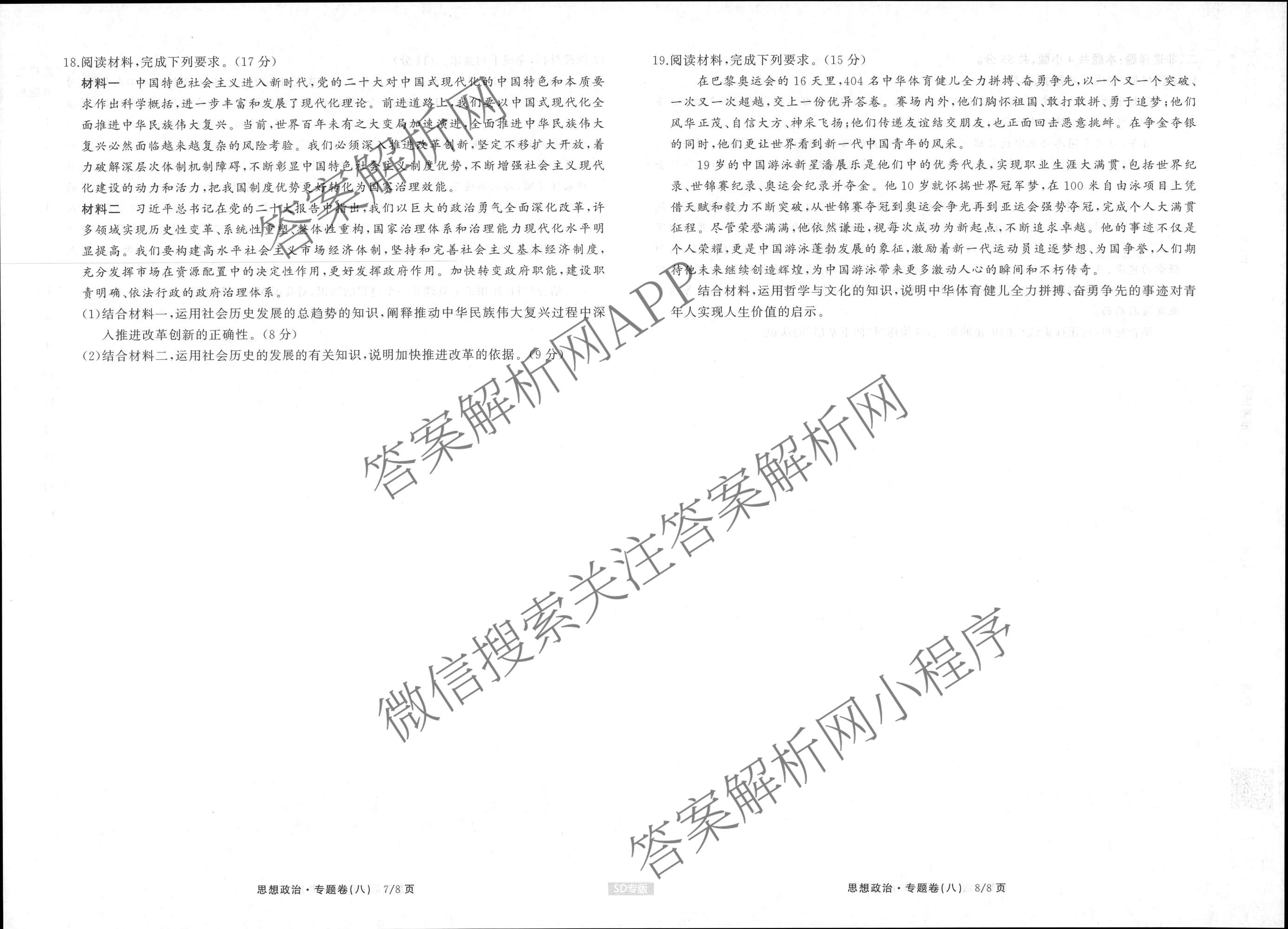 衡中同卷·2024-2025学年度高考总复习专题卷(八)8政治(SD专版)试题,目前分科卷答案网已经汇总了衡中同卷·2024-2025学年度高考总复习专题卷(八)8政治(SD专版)试题的各科答案和试卷,获取更多衡中同卷答案解析,请在关注本站。