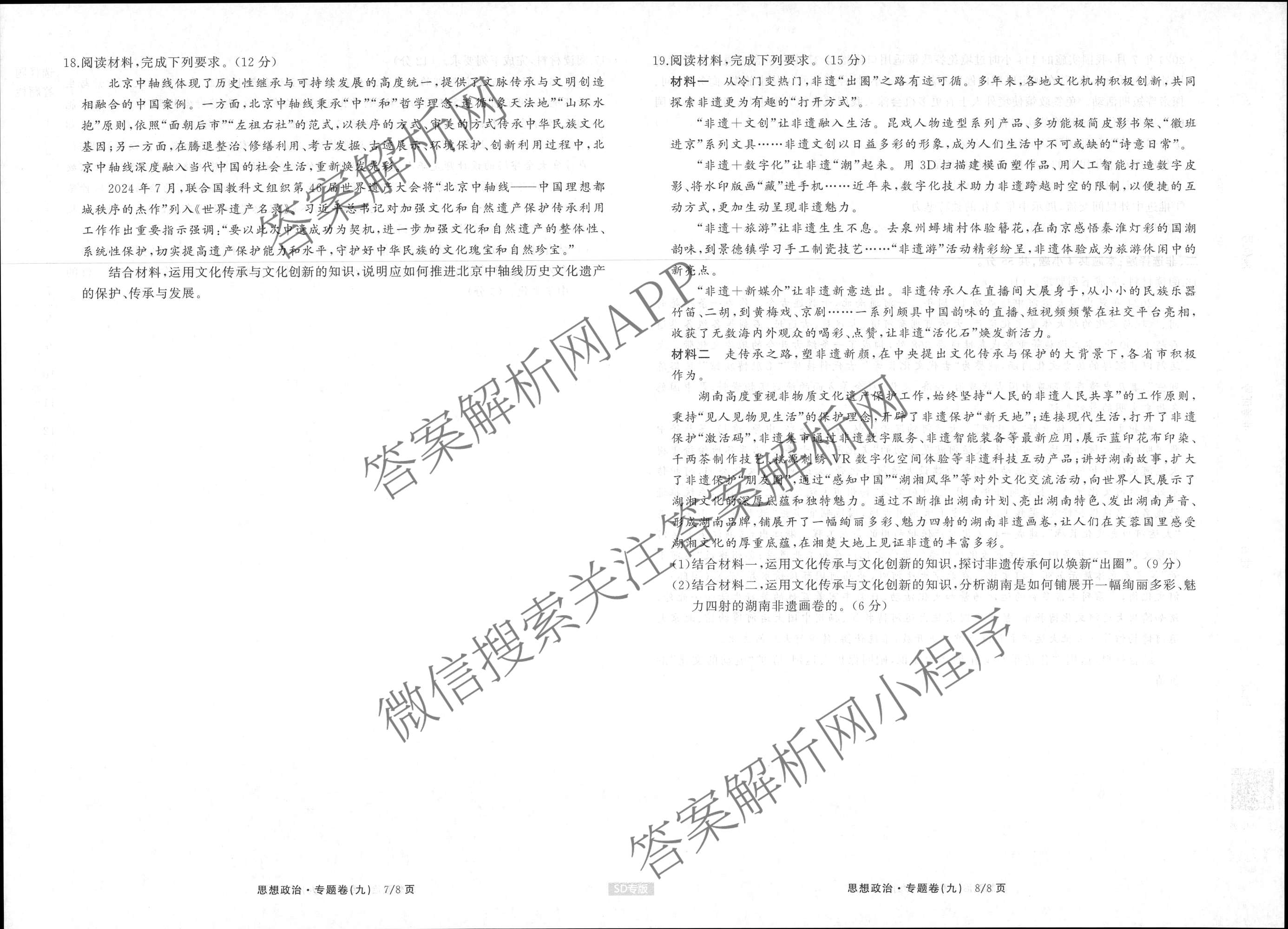 衡中同卷2024-2025学年度高考总复习专题卷(九)9政治(SD专版)试题