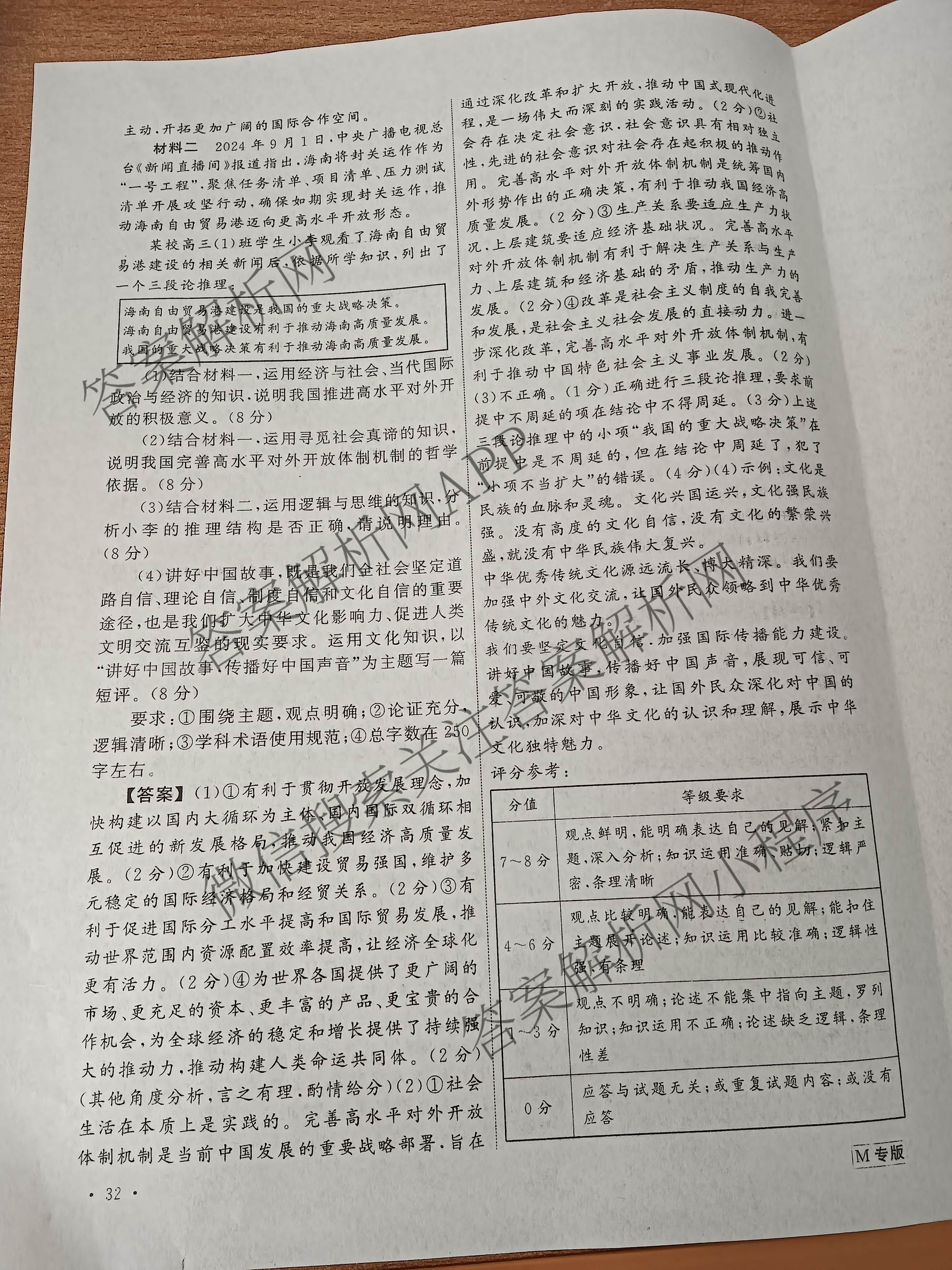 天舟高考衡中同卷·2025年普通高中学业水平选择性考试模拟调研卷(五)5政治(M专版)答案,目前分科卷答案网已经汇总了天舟高考衡中同卷·2025年普通高中学业水平选择性考试模拟调研卷(五)5政治(M专版)答案的各科答案和试卷,获取更多衡中同卷答案解析,请在关注本站。