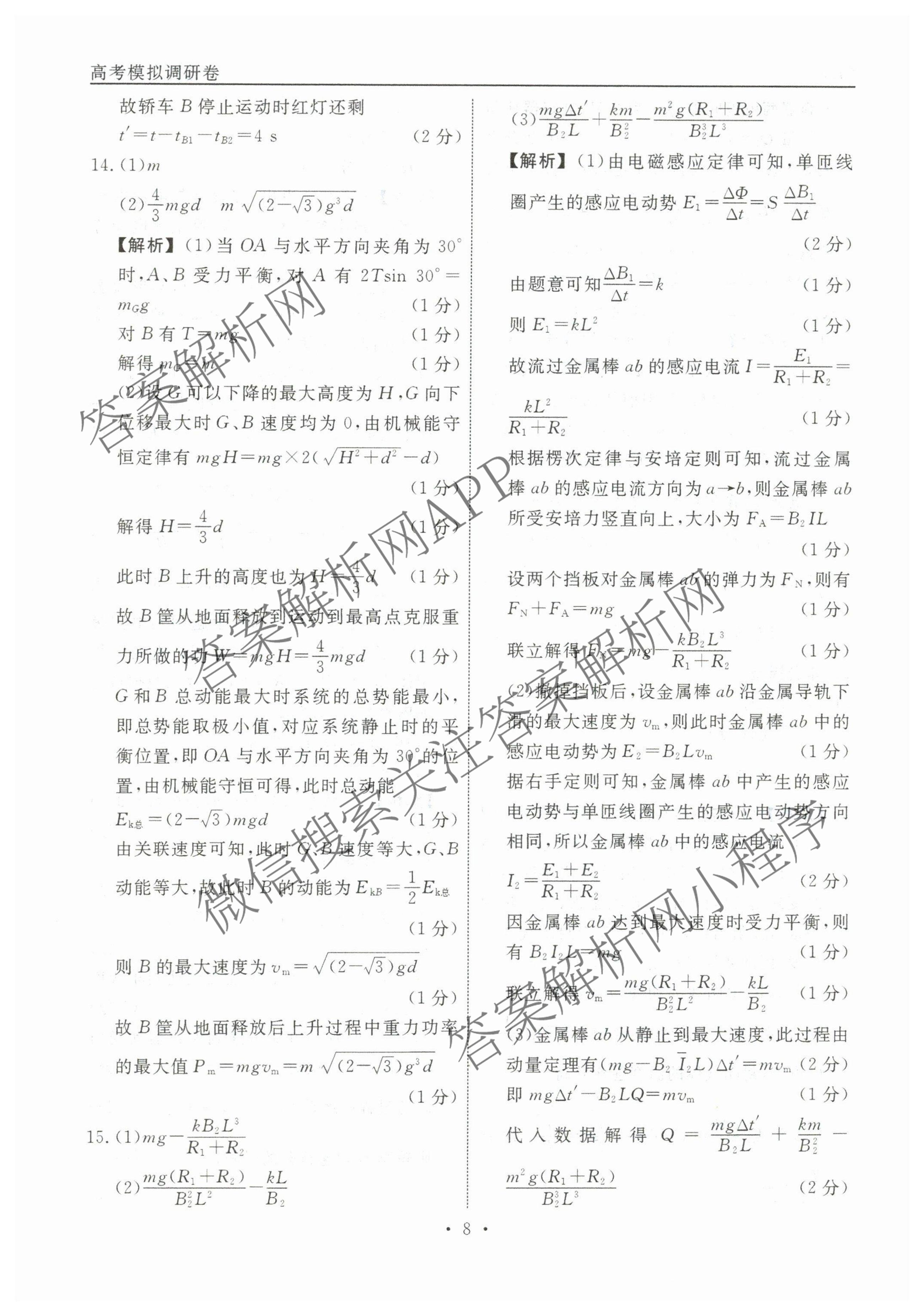 衡水名师卷·高考模拟调研卷 2025年普通高中学业水平选择性考试模拟(二)2物理(空心圆)答案,目前分科卷答案网已经汇总了衡水名师卷·高考模拟调研卷 2025年普通高中学业水平选择性考试模拟(二)2物理(空心圆)答案的各科答案和试卷,获取更多衡水名师卷答案解析,请在关注本站。