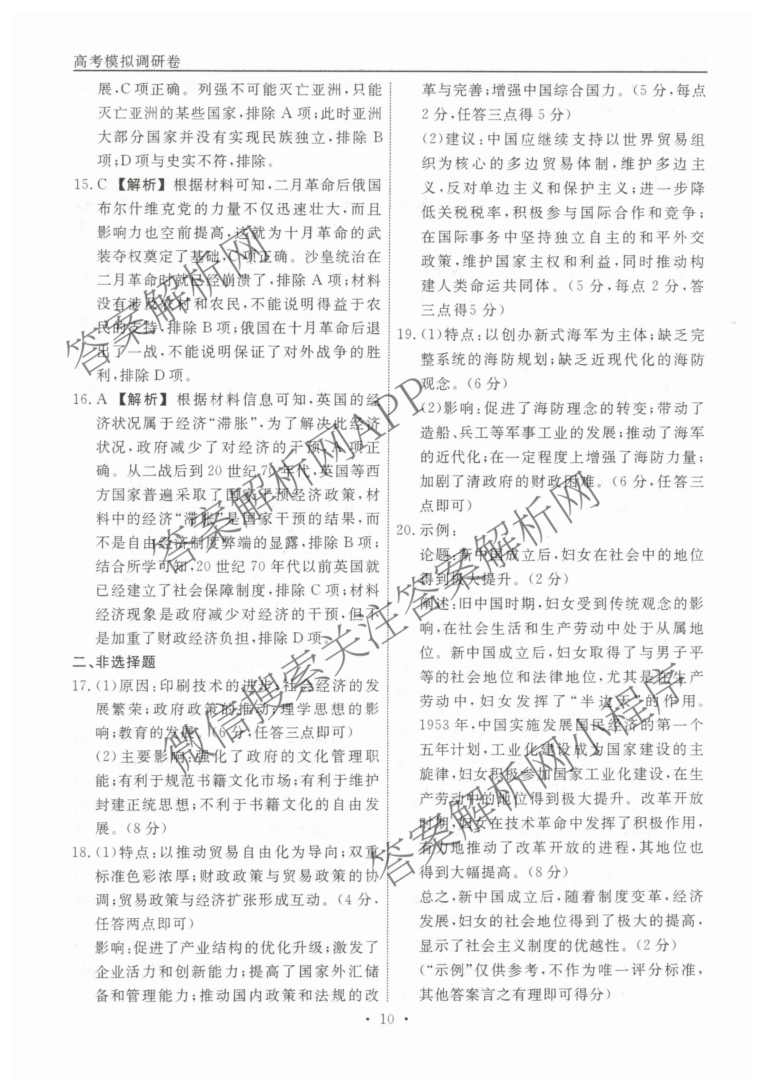 衡水名师卷高考模拟调研卷 2025年普通高等学校招生全国统一考试模拟试题(四)4历史(圆圈点)答案