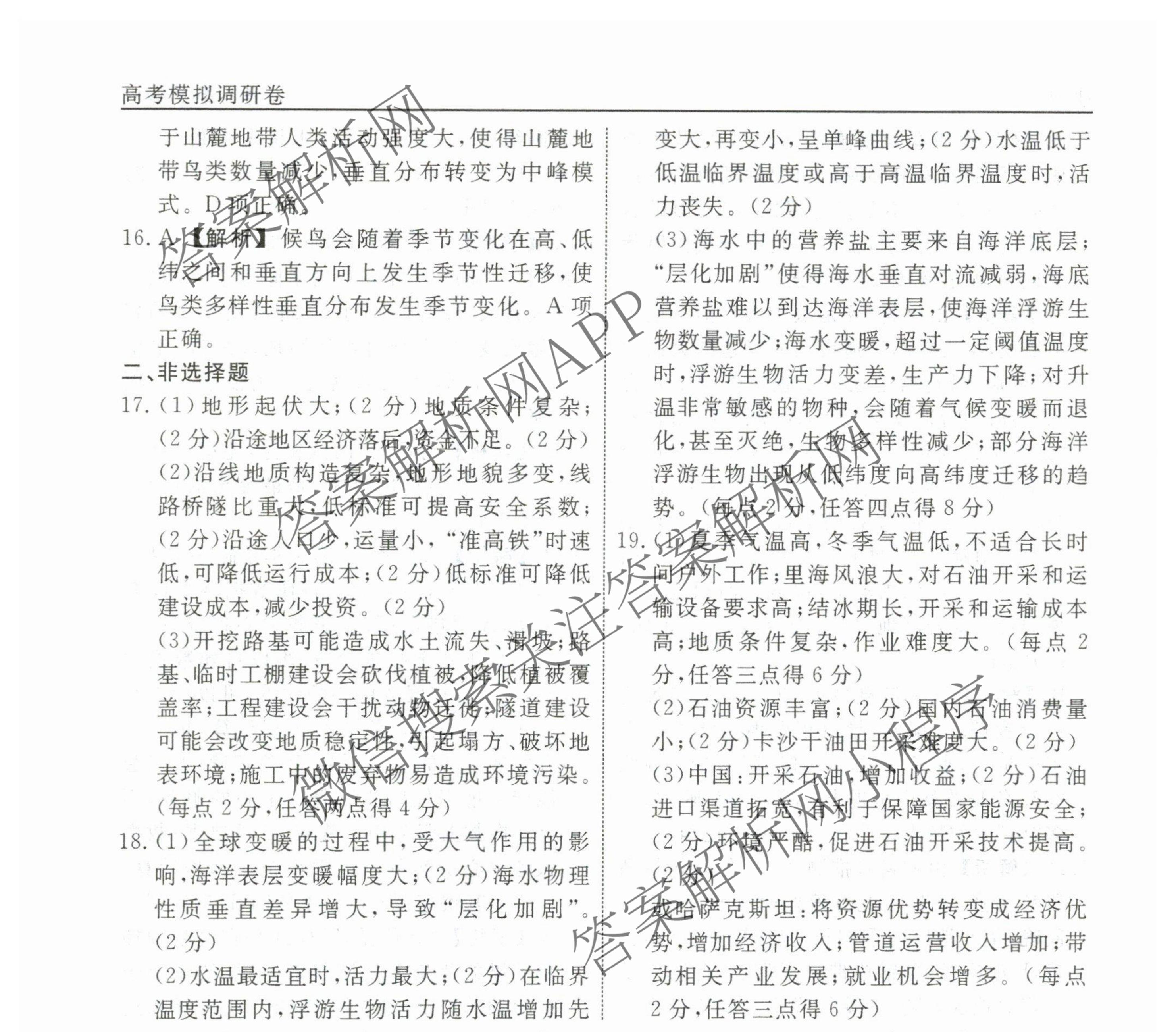 衡水名师卷高考模拟调研卷 2025年普通高等学校招生全国统一考试模拟(二)2地理(圆圈点)答案