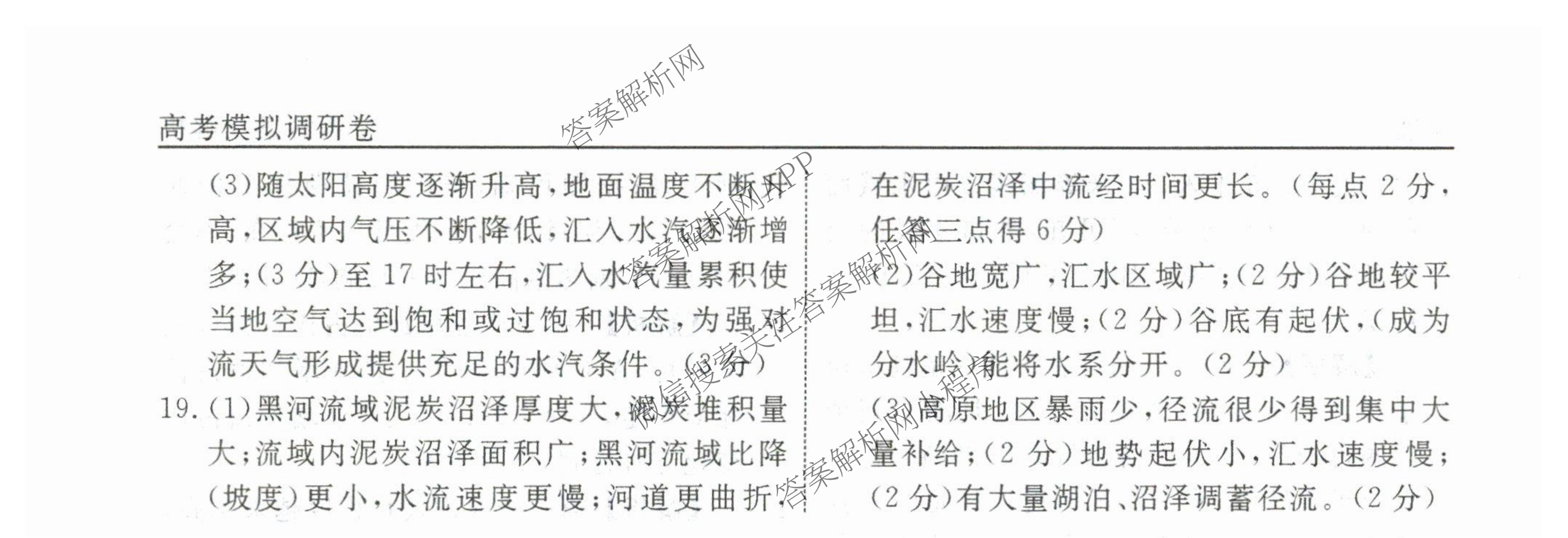 衡水名师卷高考模拟调研卷 2025年普通高等学校招生全国统一考试模拟(三)3地理(圆圈点)答案