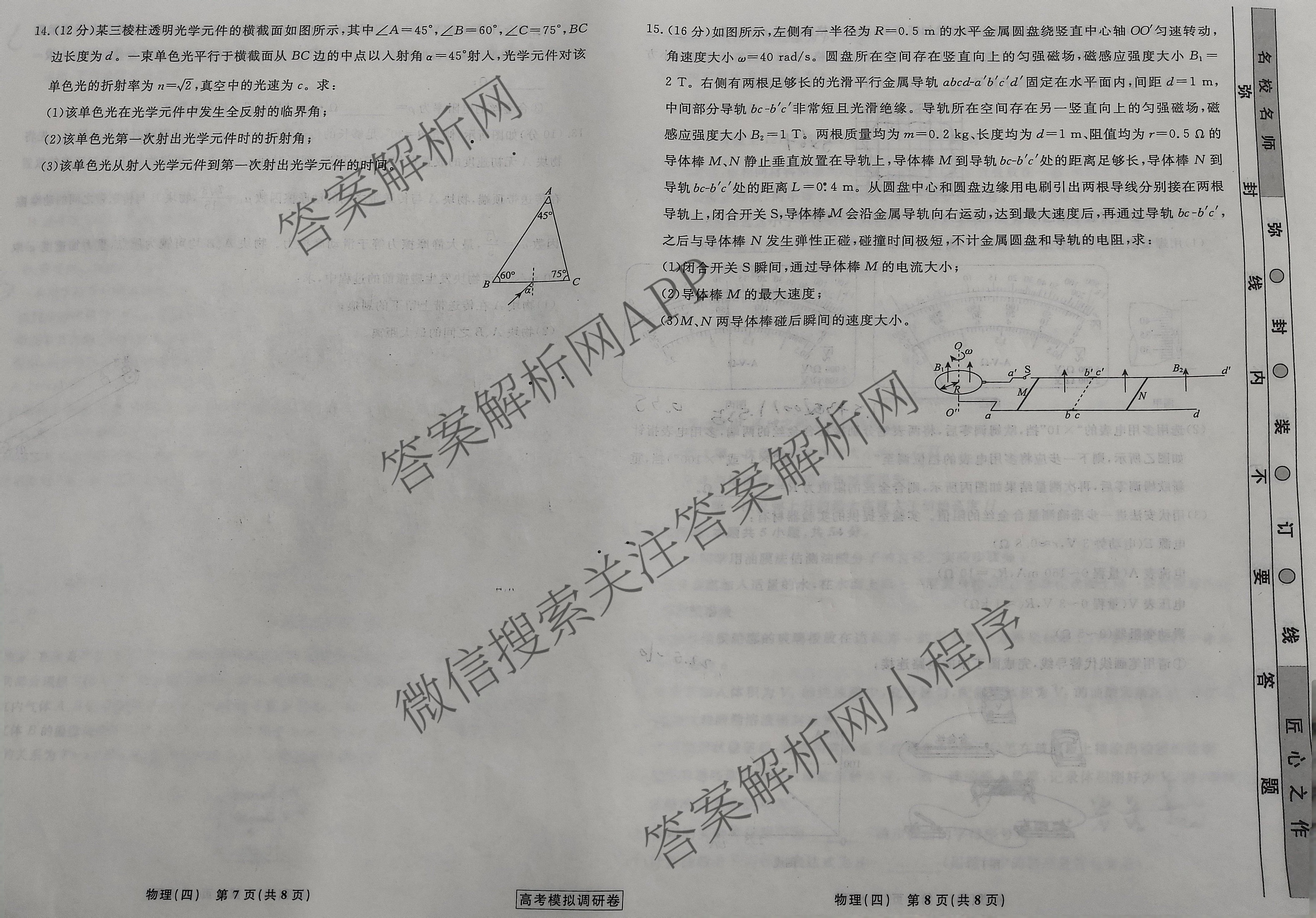 衡水名师卷·高考模拟调研卷 2025年普通高等学校招生全国统一考试模拟(四)4物理(实心圆)试题,目前分科卷答案网已经汇总了衡水名师卷·高考模拟调研卷 2025年普通高等学校招生全国统一考试模拟(四)4物理(实心圆)试题的各科答案和试卷,获取更多衡水名师卷答案解析,请在关注本站。