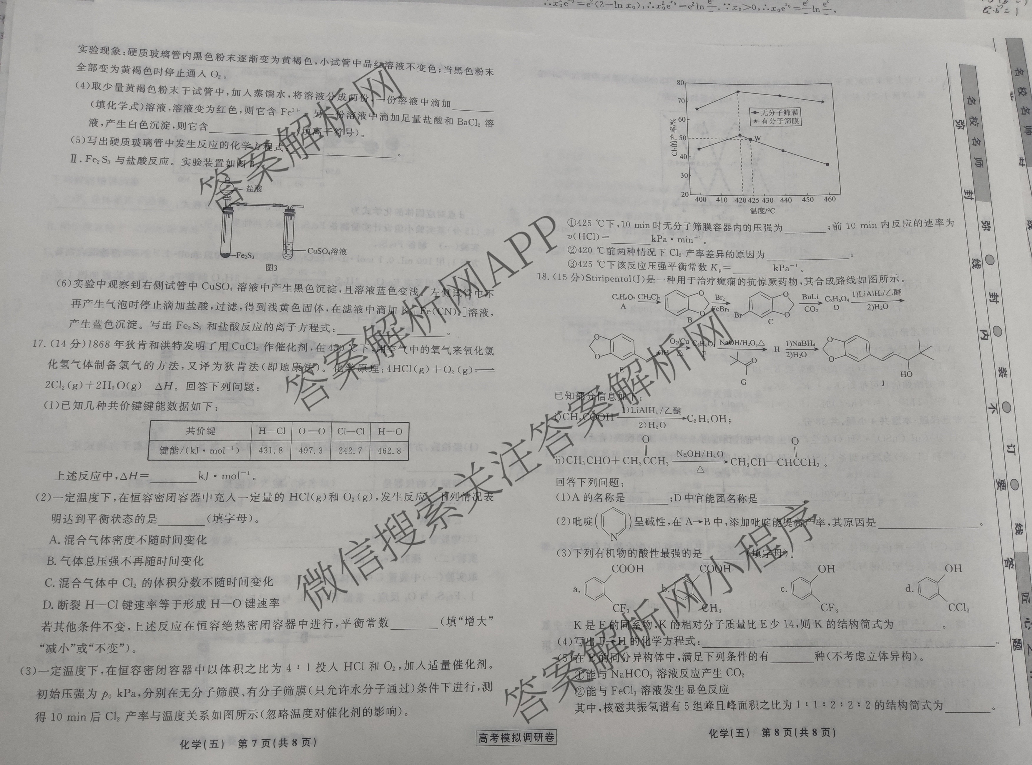 衡水名师卷·高考模拟调研卷 2025年普通高等学校招生全国统一考试模拟(五)5化学(实心圆)试题,目前分科卷答案网已经汇总了衡水名师卷·高考模拟调研卷 2025年普通高等学校招生全国统一考试模拟(五)5化学(实心圆)试题的各科答案和试卷,获取更多衡水名师卷答案解析,请在关注本站。