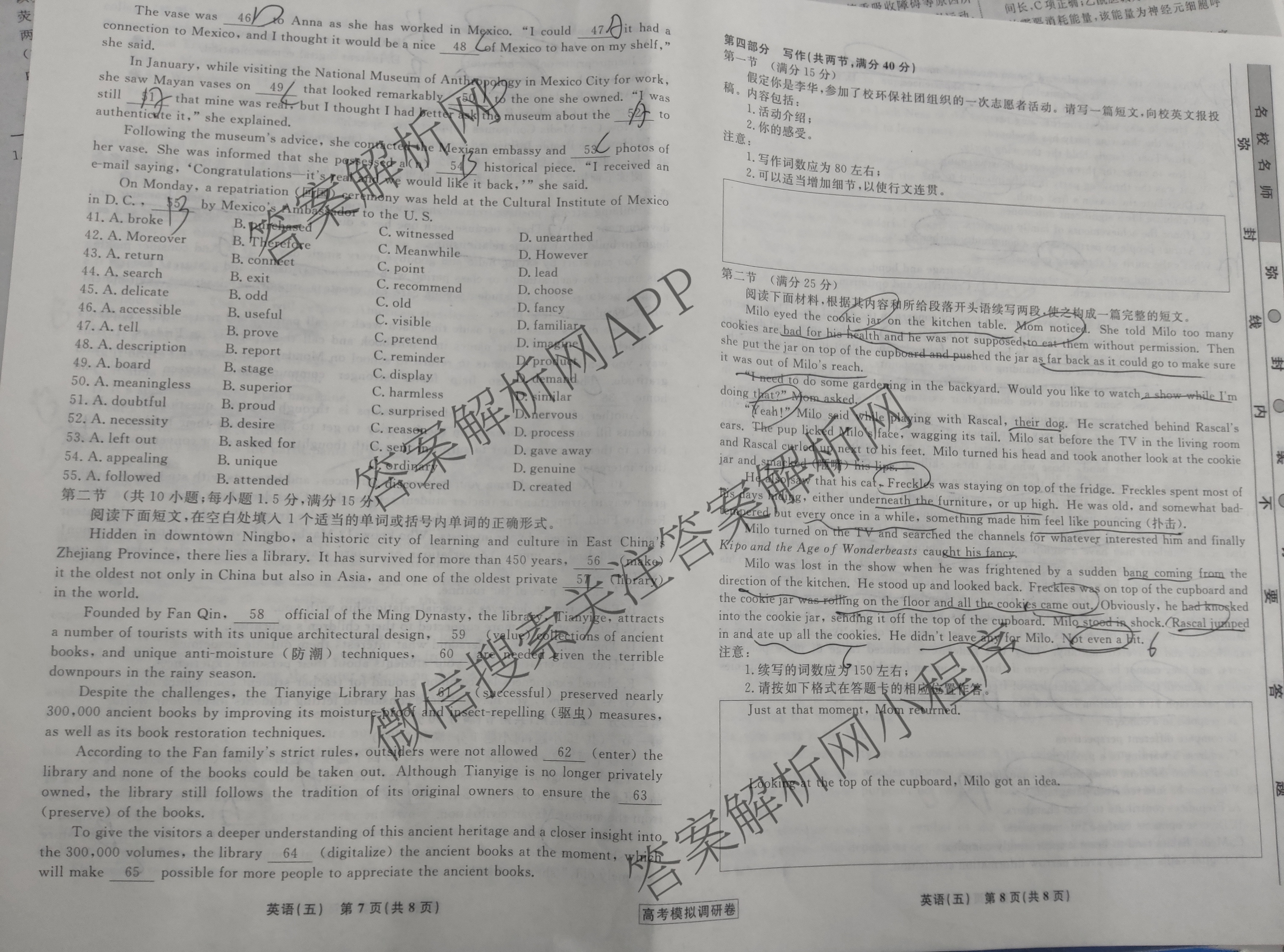 衡水名师卷·高考模拟调研卷 2025年普通高校招生全国统一考试模拟试题(五)5英语(实心圆)试题,目前分科卷答案网已经汇总了衡水名师卷·高考模拟调研卷 2025年普通高校招生全国统一考试模拟试题(五)5英语(实心圆)试题的各科答案和试卷,获取更多衡水名师卷答案解析,请在关注本站。