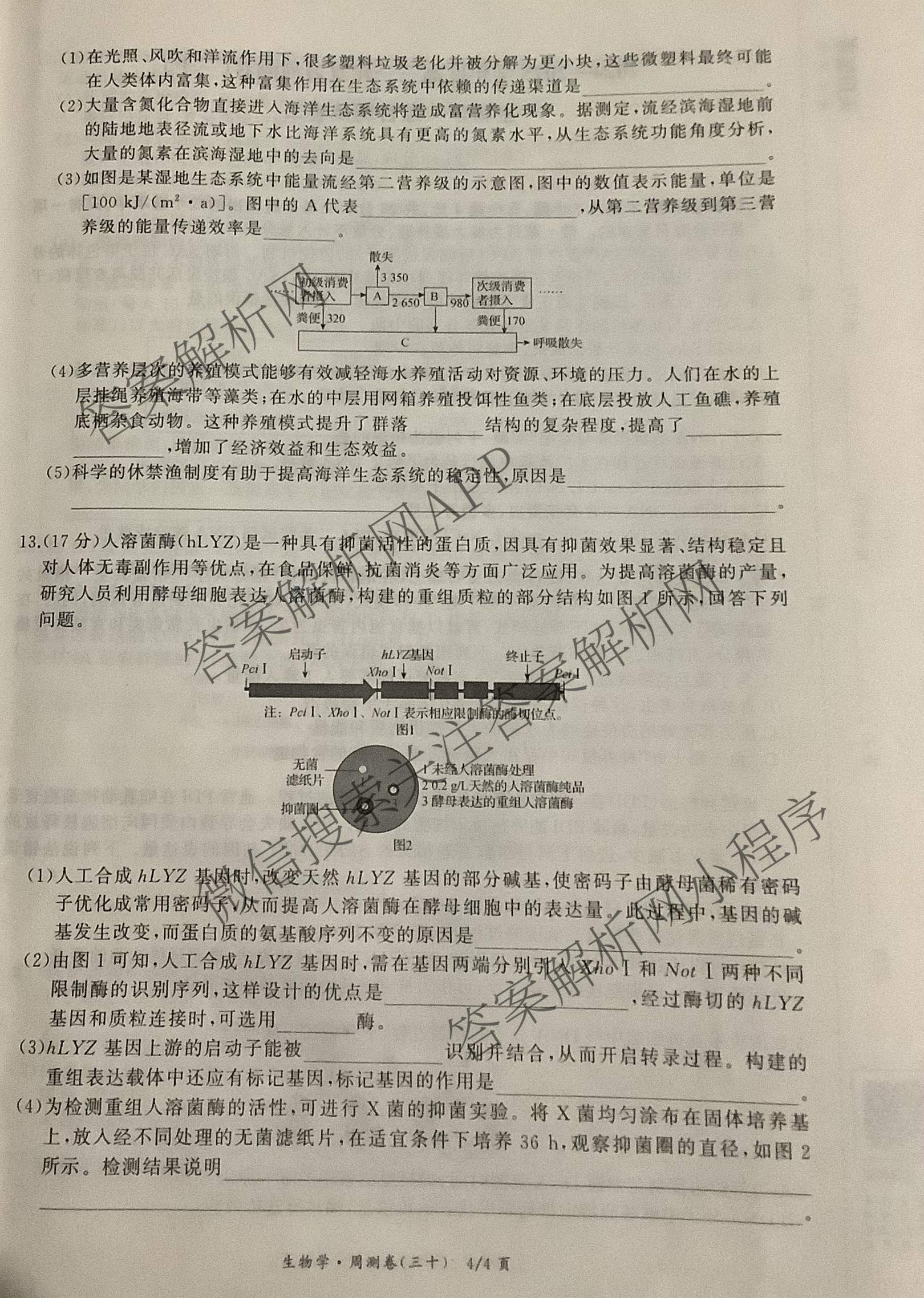 衡中同卷2024-2025学年度高三一轮复习周测卷 生物(X版)(三十)30试题