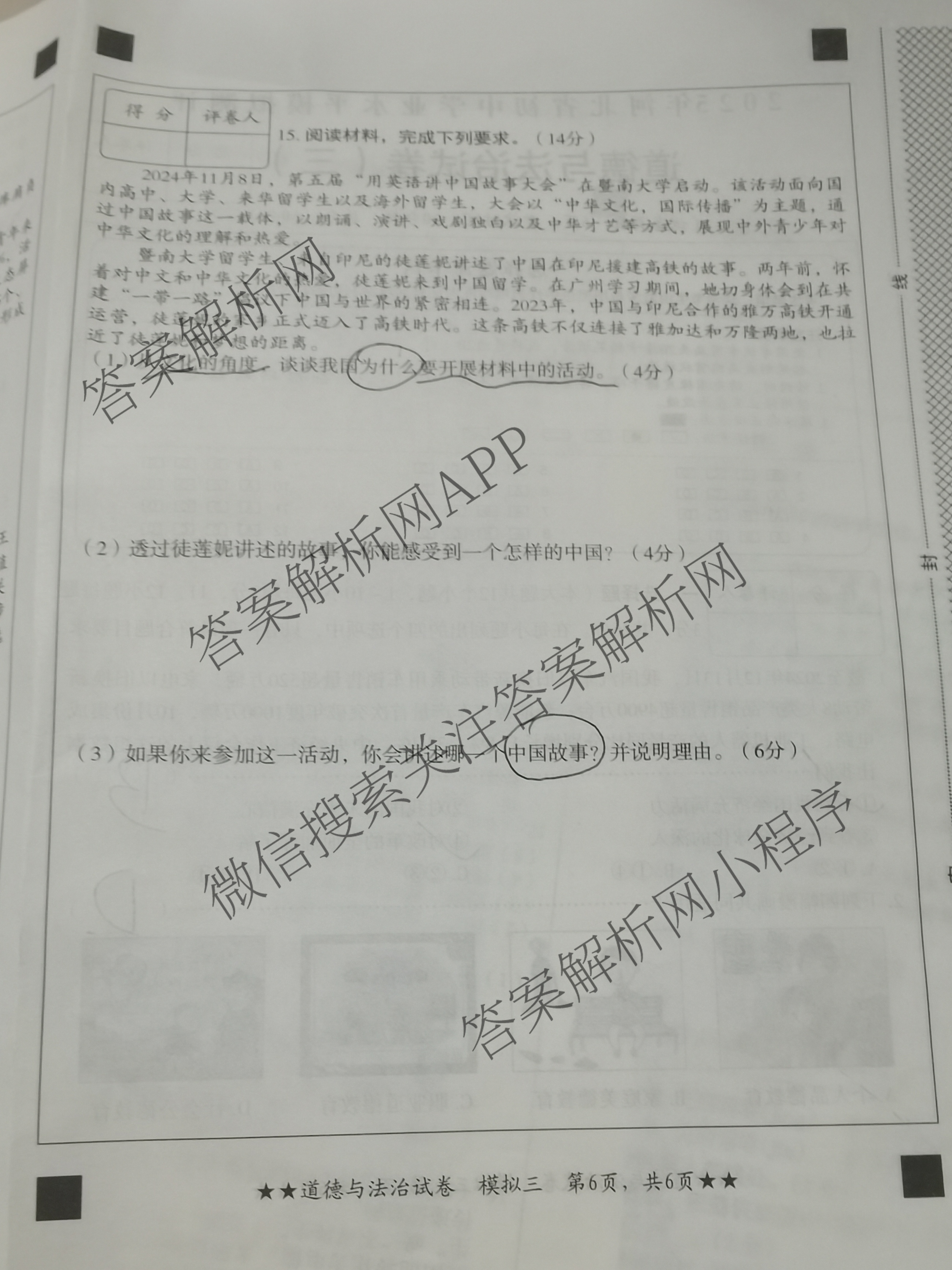 2025年河北省初中学业水平模拟测评(三)二星道德与法治试题,目前分科卷答案网已经汇总了2025年河北省初中学业水平模拟测评(三)二星道德与法治试题的各科答案和试卷,获取更多河北省初中学业水平模拟测评答案解析,请在关注本站。